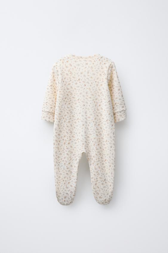ZARA КОМБИНЕЗОН ИЗ ВЕЛЮРА С ЦВЕТОЧНЫМ ПРИНТОМ, ЭКРЮ