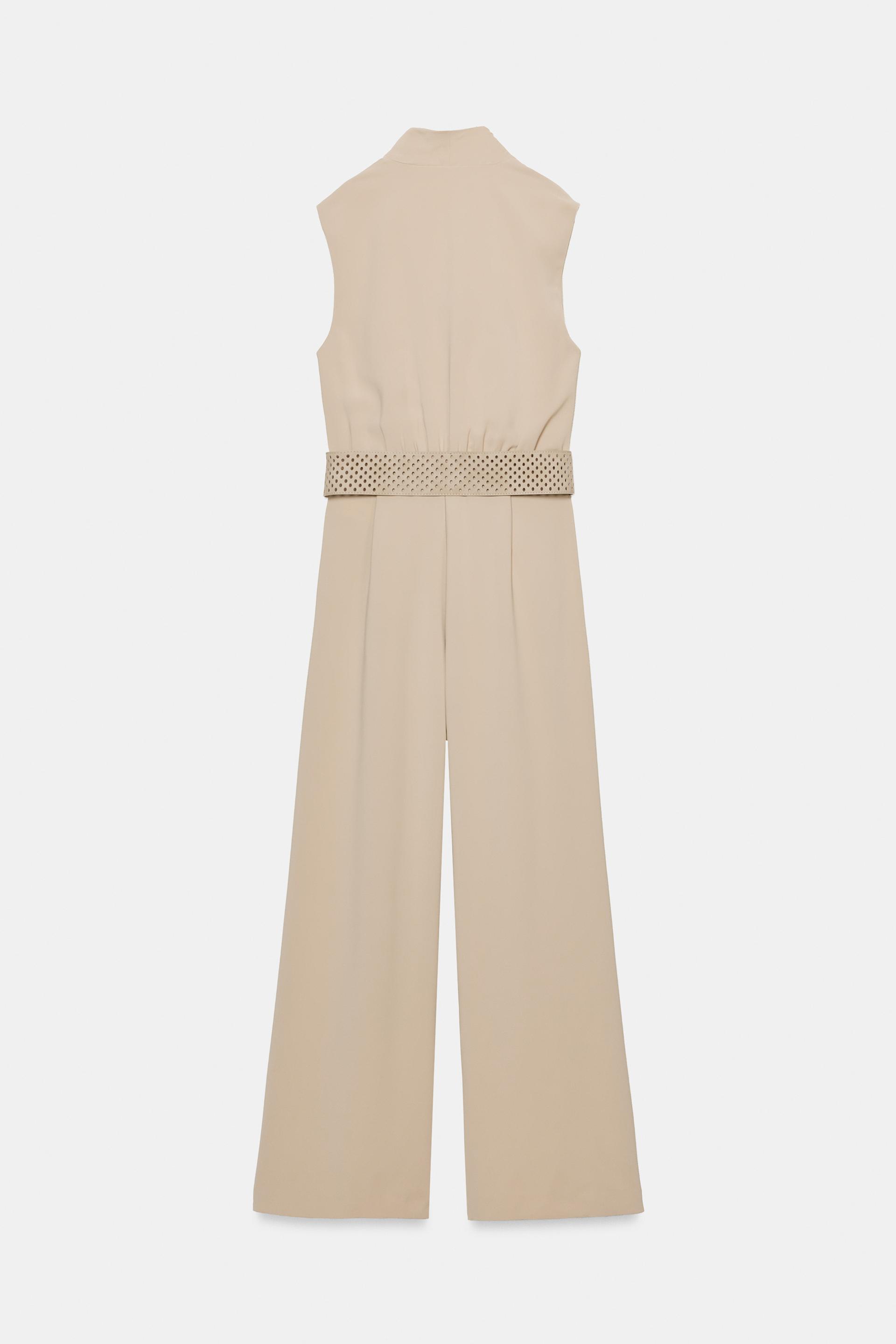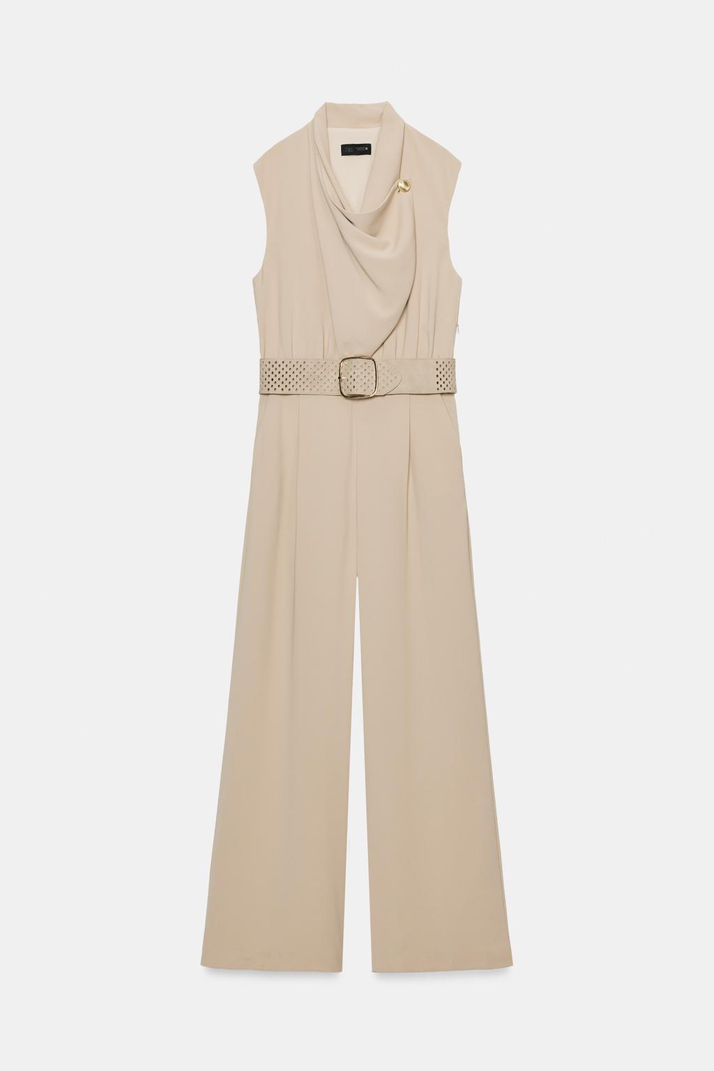 ZARA КОМБИНЕЗОН С ПОЯСОМ, ПЕСОЧНЫЙ