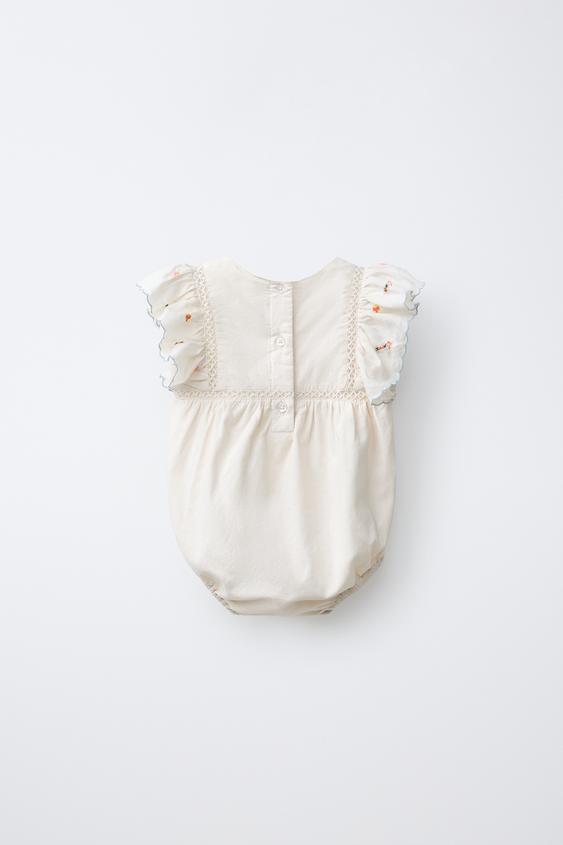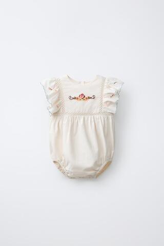 ZARA КОМБИНЕЗОН С ВЫШИТЫМ ЦВЕТКОМ, ЭКРЮ
