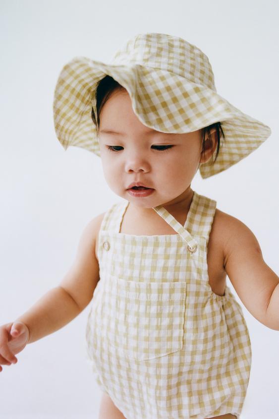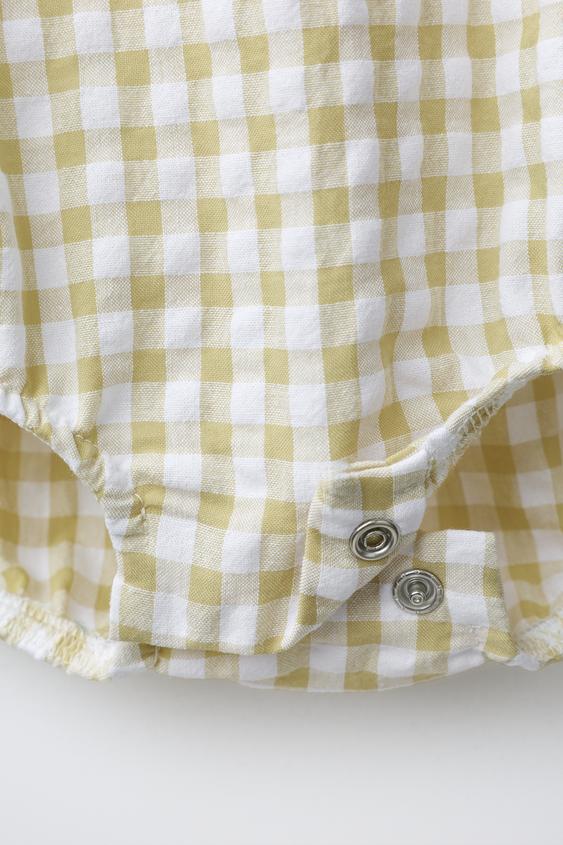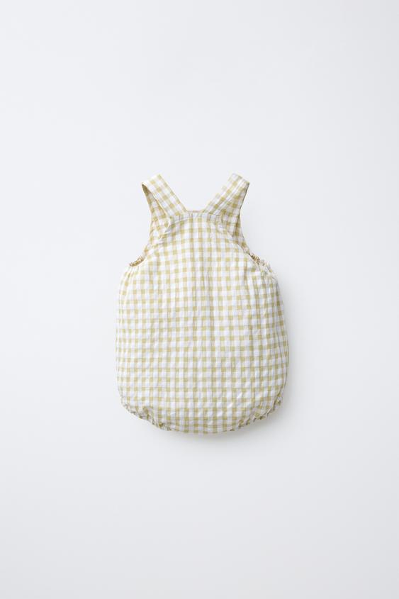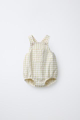 ZARA КОМБИНЕЗОН В КЛЕТКУ ВИШИ, СВЕТЛО-ЗЕЛЕНЫЙ