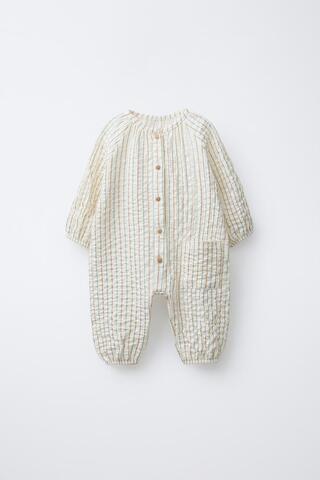 ZARA КОМБИНЕЗОН В ПОЛОСКУ, ЭКРЮ