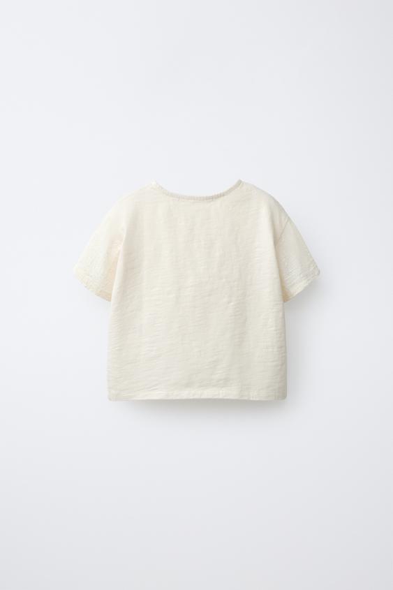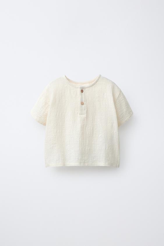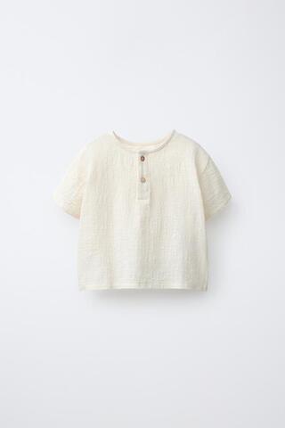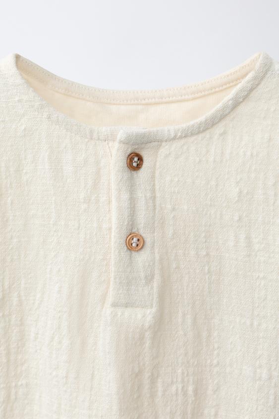ZARA КОМБИНИРОВАННАЯ ФУТБОЛКА НА ПУГОВИЦАХ, ЭКРЮ