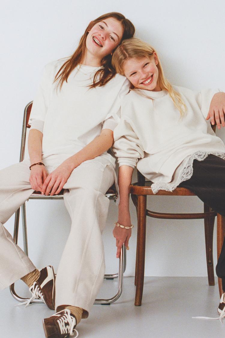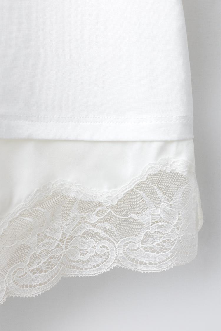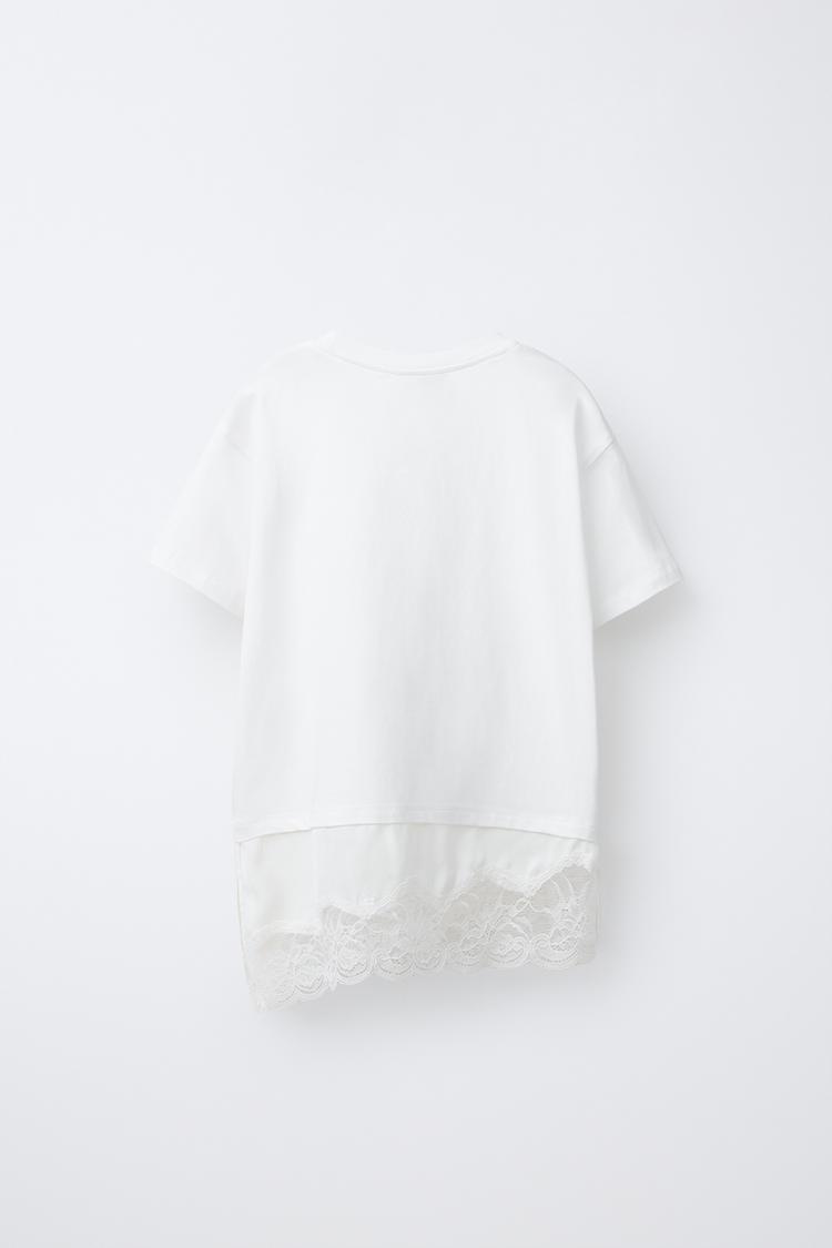 ZARA КОМБИНИРОВАННАЯ ФУТБОЛКА С КРУЖЕВОМ, БЕЛЫЙ