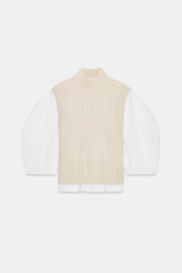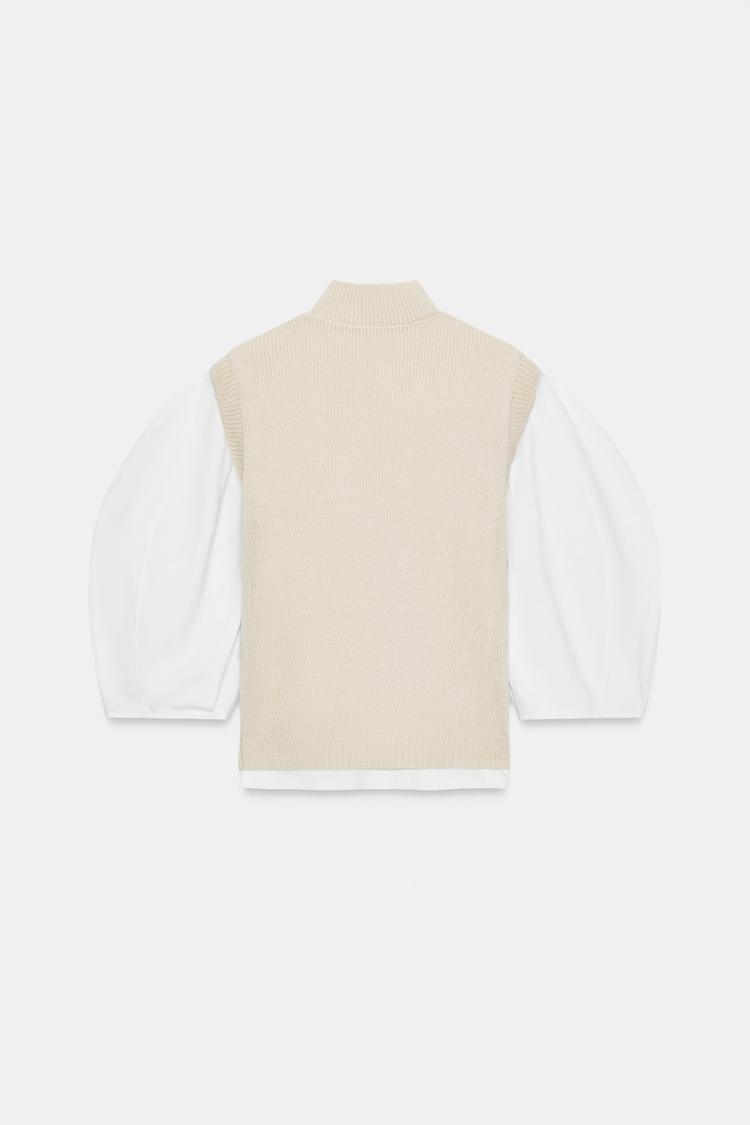 ZARA КОМБИНИРОВАННАЯ ФУТБОЛКА С ЖИЛЕТОМ, ЭКРЮ