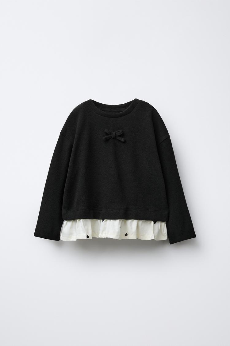 ZARA КОМБИНИРОВАННАЯ ФУТБОЛКА SOFT TOUCH С БАНТОМ И СЕРДЕЧКАМИ,ЧЕРНЫЙ