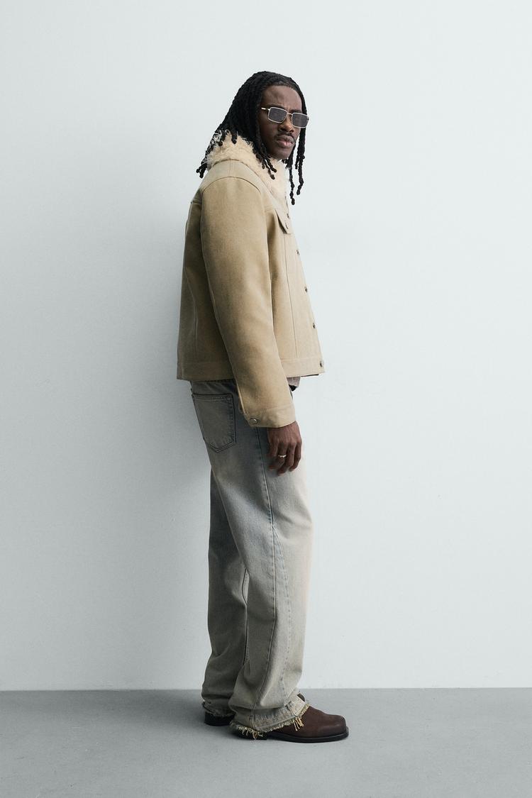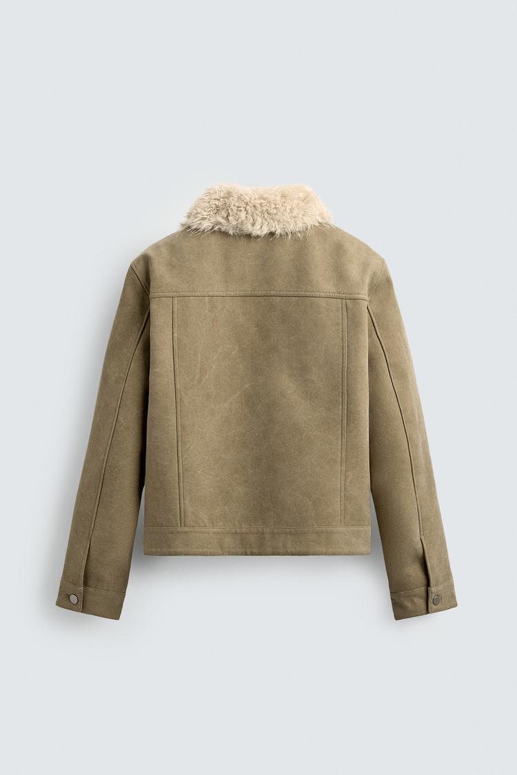 ZARA КОМБИНИРОВАННАЯ ХЛОПКОВАЯ КУРТКА С ЭФФЕКТОМ МЕХА, ПЕСОЧНЫЙ