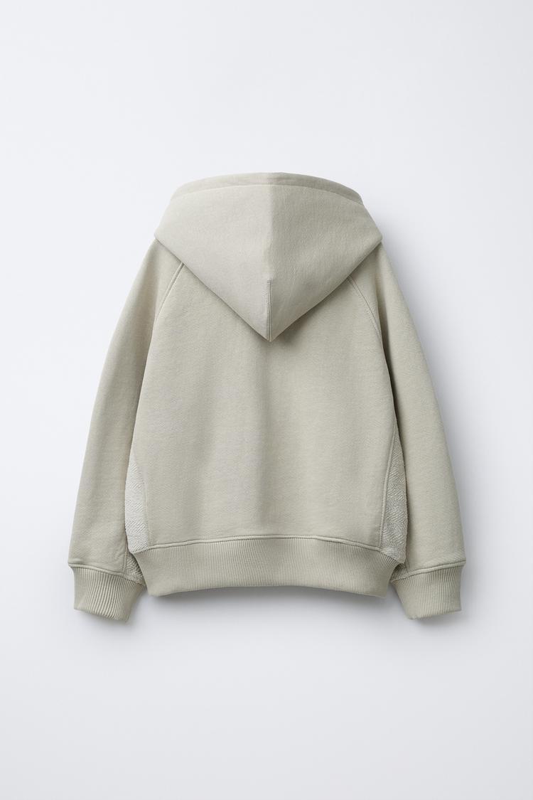 ZARA КОМБИНИРОВАННАЯ ХУДИ С КАПЮШОНОМ, ЭКРЮ