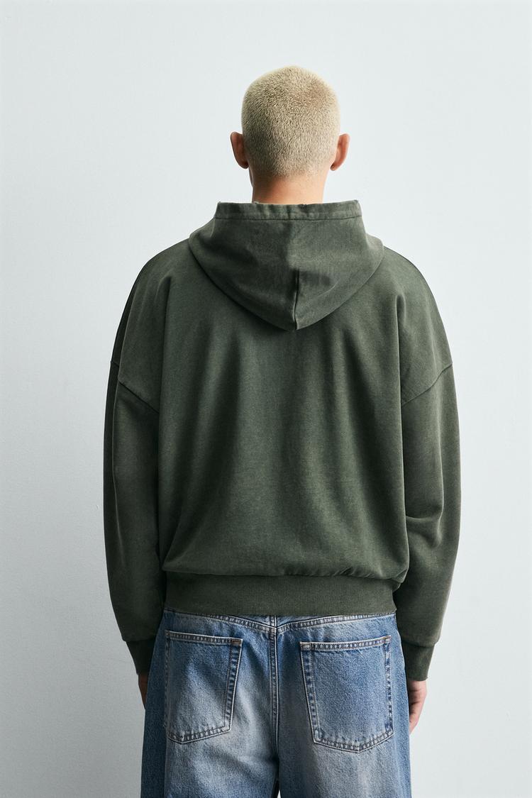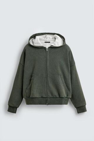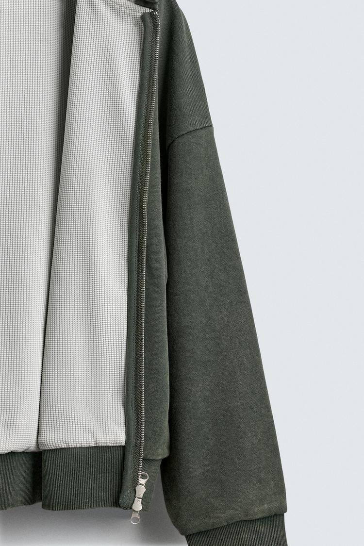 ZARA КОМБИНИРОВАННАЯ ХУДИ ВАФЕЛЬНОЙ СТРУКТУРЫ С КАПЮШОНОМ, ХАКИ