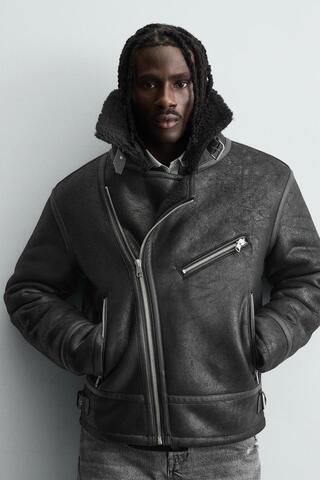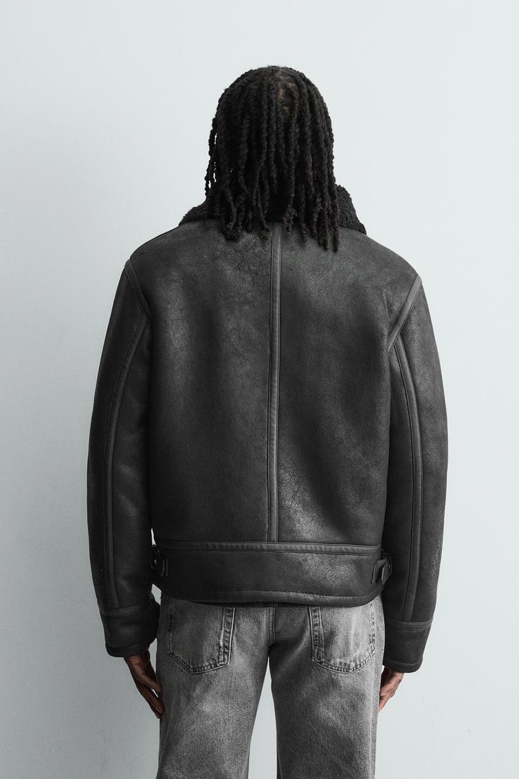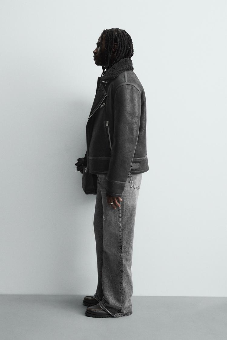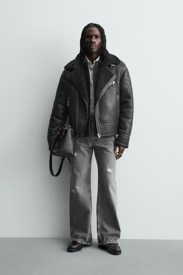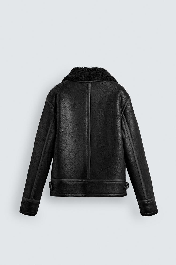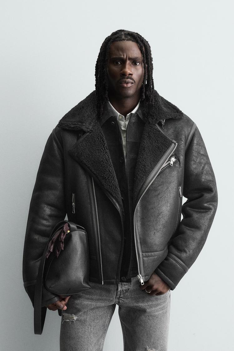 ZARA КОМБИНИРОВАННАЯ КУРТКА ИЗ ИСКУССТВЕННОЙ КОЖИ, ЧЕРНЫЙ