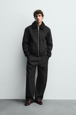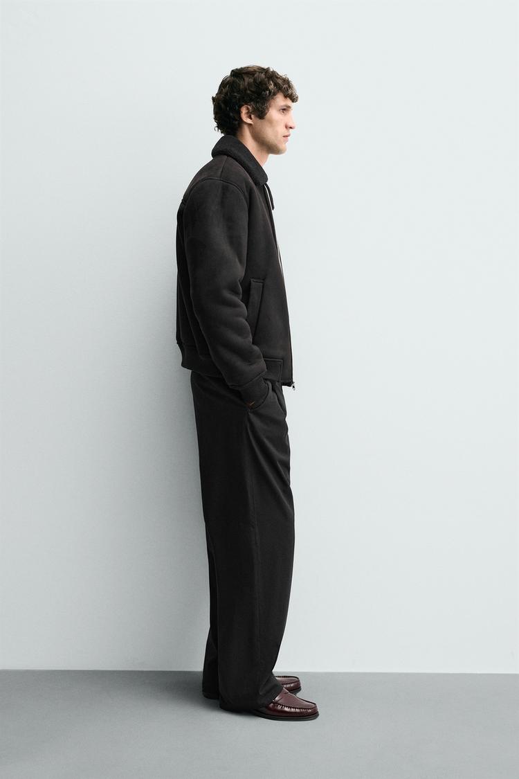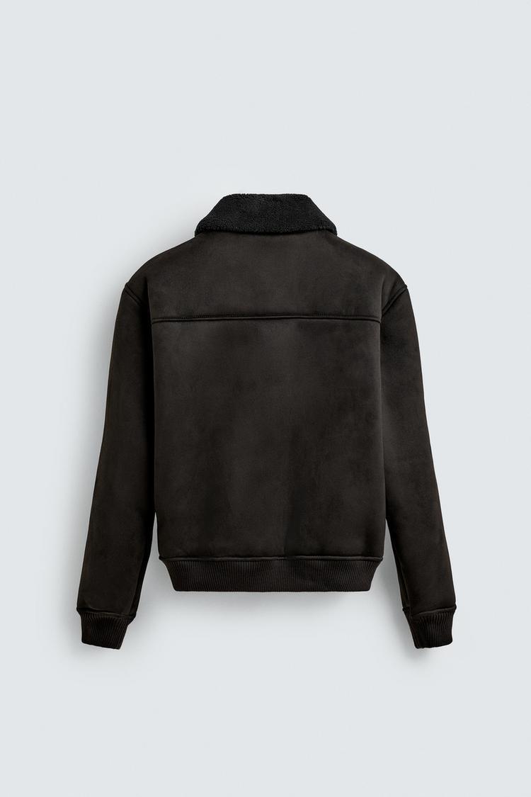 ZARA КОМБИНИРОВАННАЯ КУРТКА ИЗ ИСКУССТВЕННОЙ ЗАМШИ, ЧЕРНЫЙ