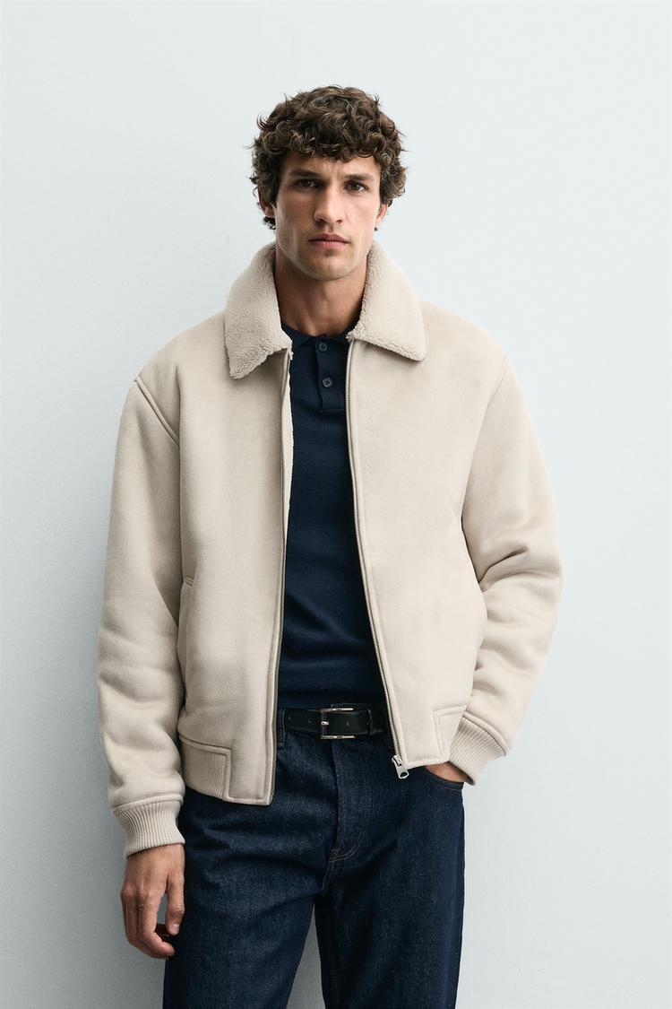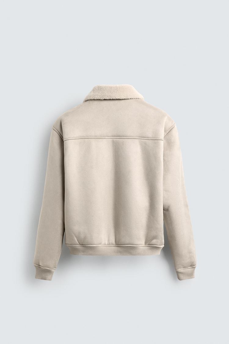 ZARA КОМБИНИРОВАННАЯ КУРТКА ИЗ ИСКУССТВЕННОЙ ЗАМШИ, СВЕТЛО-СЕРЫЙ