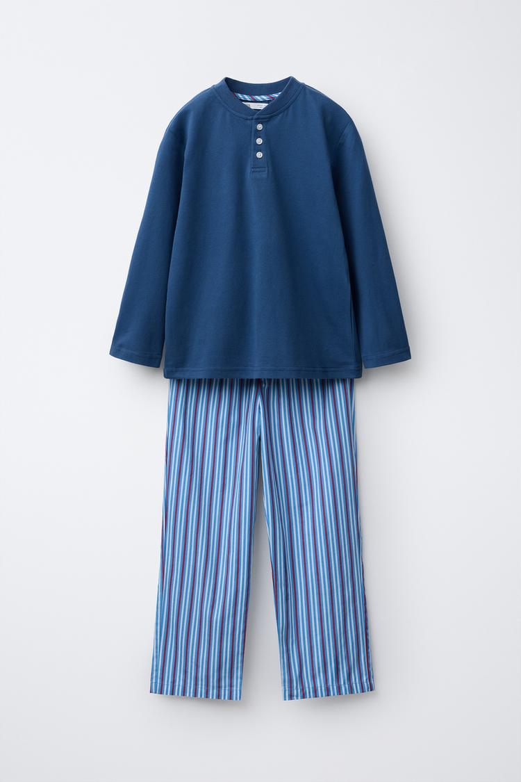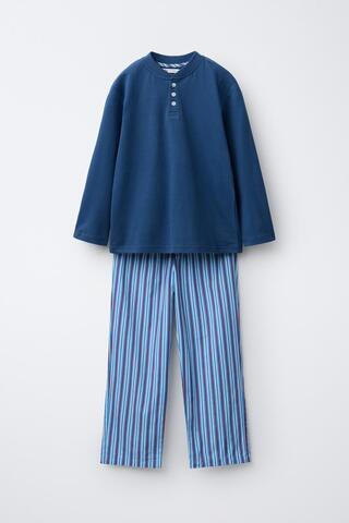 ZARA КОМБИНИРОВАННАЯ ПИЖАМА В ПОЛОСКУ, СИНИЙ