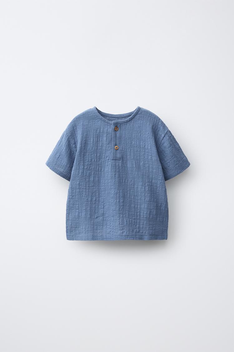 ZARA КОМБИНИРОВАННАЯ РУБАШКА С ТЕКСТУРОЙ, СИНИЙ