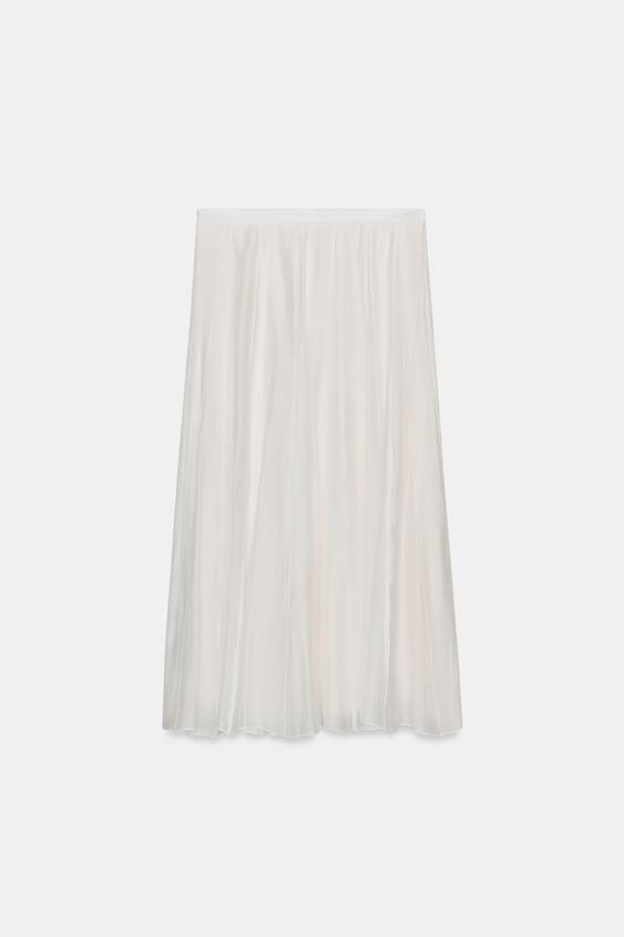 ZARA КОМБИНИРОВАННАЯ СТРУЯЩАЯСЯ ЮБКА — ZW COLLECTION, ЖЕЛТОВАТО-БЕЛЫЙ