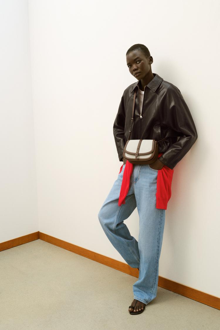 ZARA КОМБИНИРОВАННАЯ СУМКА С ПЛЕЧЕВЫМ РЕМНЕМ, СВЕТЛО-БЕЖЕВЫЙ