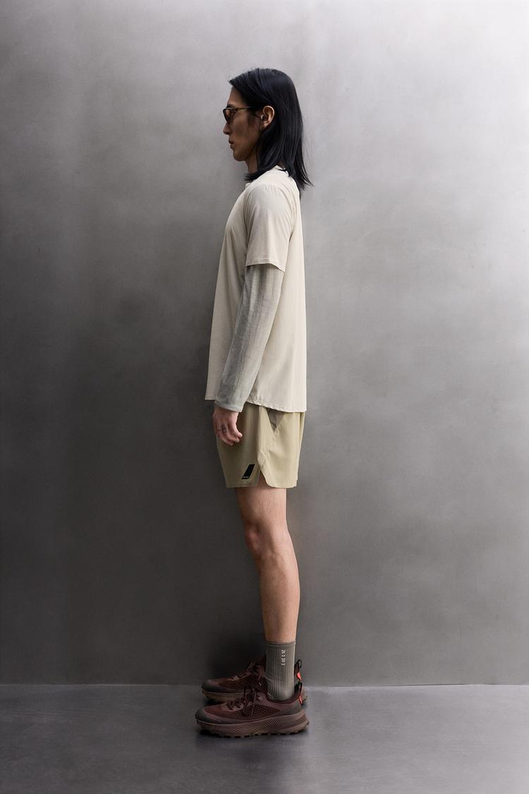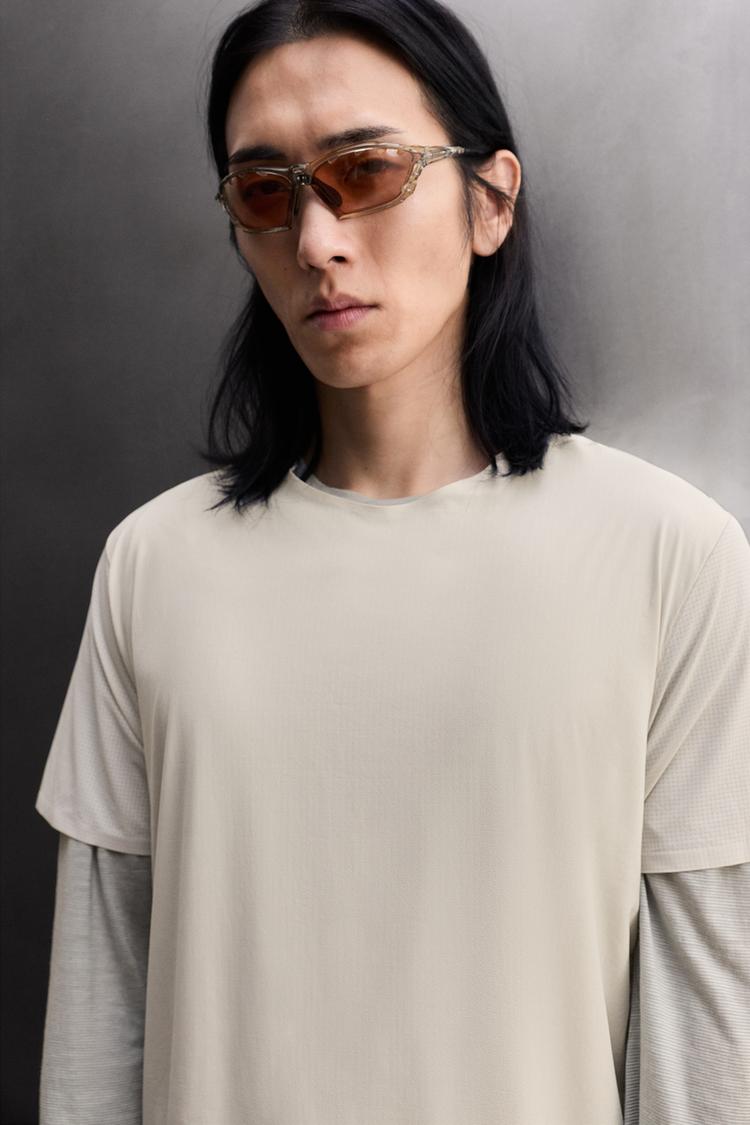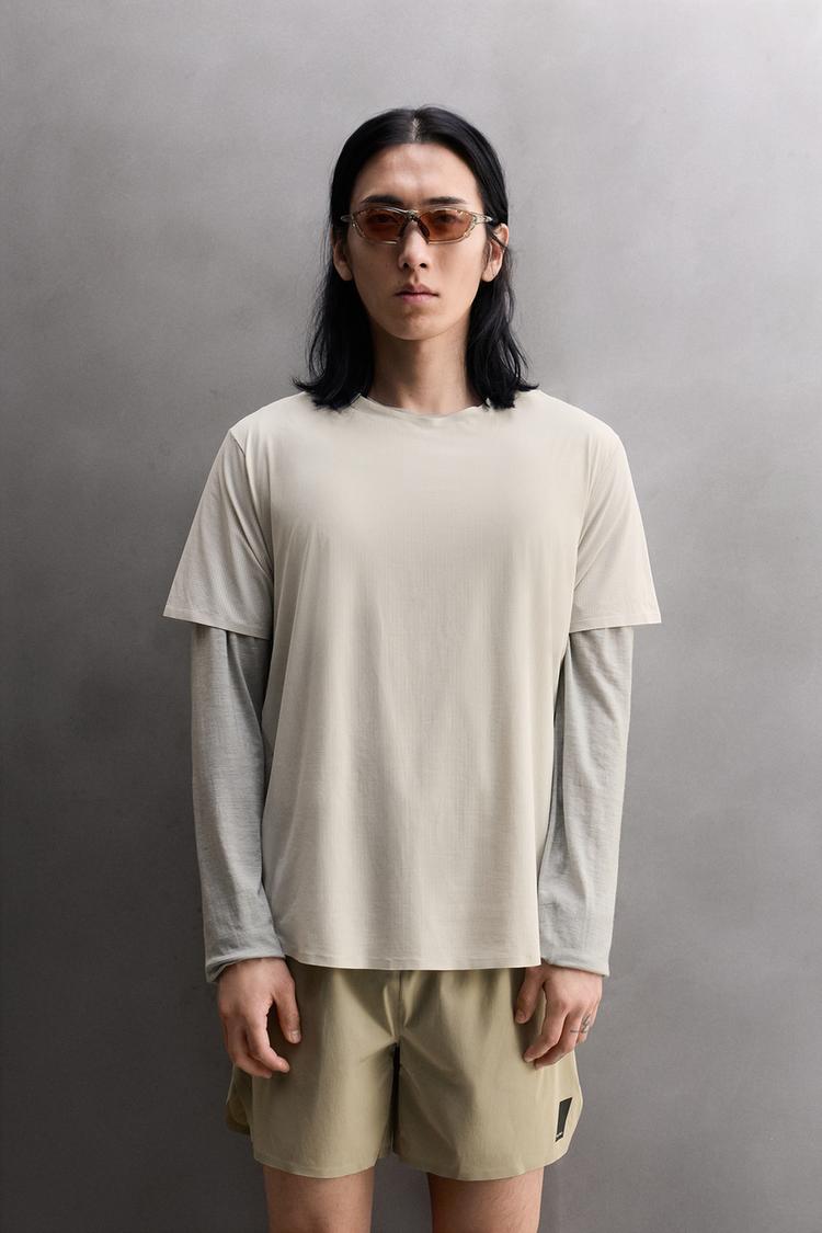 ZARA КОМБИНИРОВАННАЯ ТЕХНИЧЕСКАЯ ФУТБОЛКА ДЛЯ БЕГА, СВЕТЛО-СЕРЫЙ