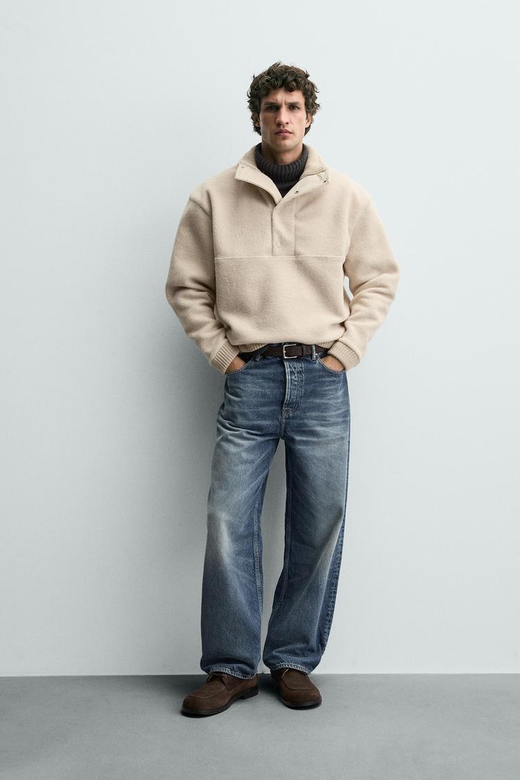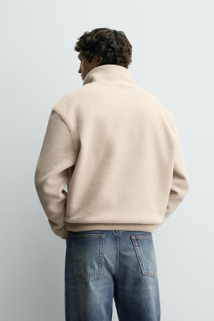 ZARA КОМБИНИРОВАННАЯ ТОЛСТОВКА ИЗ ИСКУССТВЕННОЙ ОВЧИНЫ, ЭКРЮ
