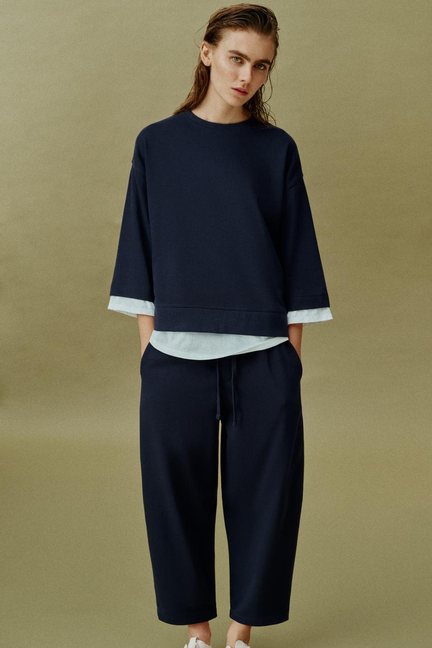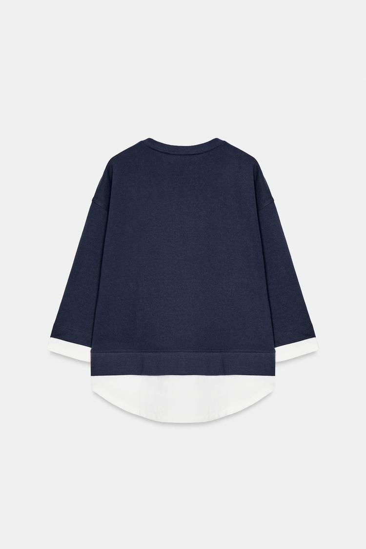 ZARA КОМБИНИРОВАННАЯ ТОЛСТОВКА С ДЛИННЫМИ РУКАВАМИ, МОРСКОЙ СИНИЙ