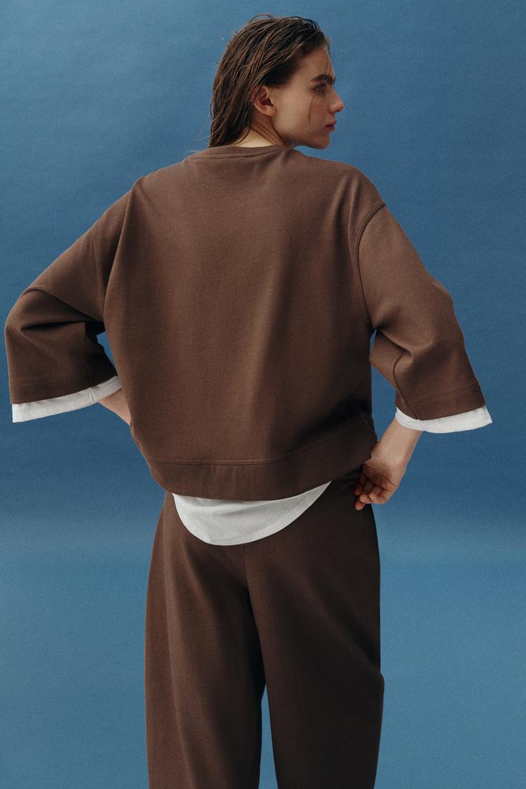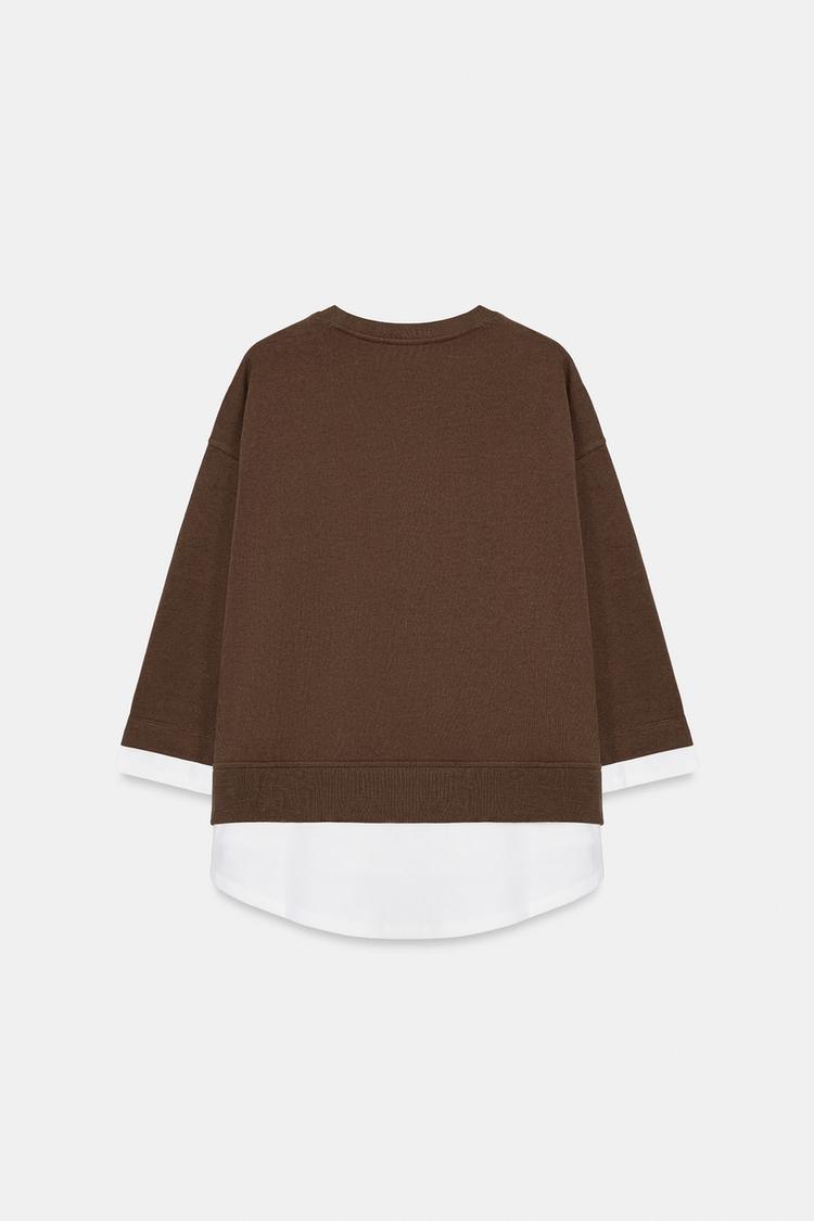 ZARA КОМБИНИРОВАННАЯ ТОЛСТОВКА С ДЛИННЫМИ РУКАВАМИ, СВЕТЛО-КОРИЧНЕВЫЙ