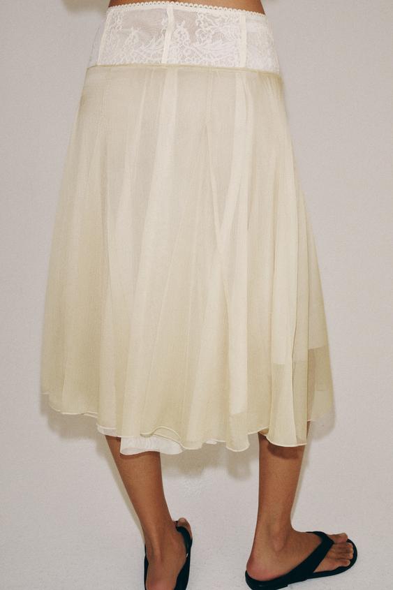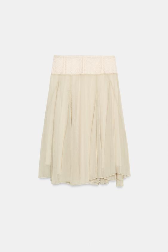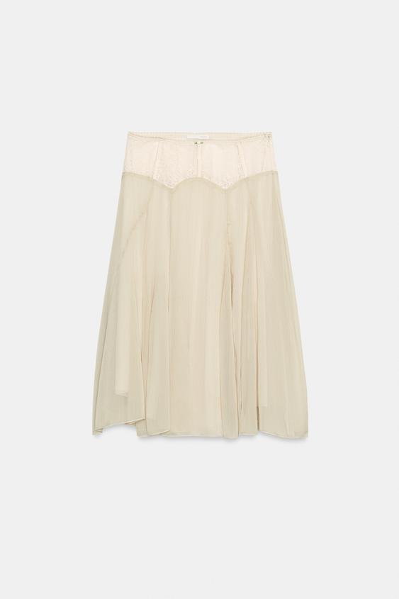 ZARA КОМБИНИРОВАННАЯ ЮБКА МИДИ, СВЕТЛО-ПЕСОЧНЫЙ