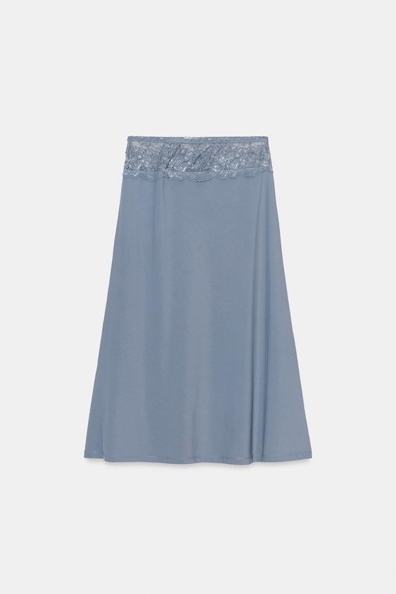 ZARA КОМБИНИРОВАННАЯ ЮБКА С КРУЖЕВОМ, ПАСТЕЛЬНО-СИНИЙ