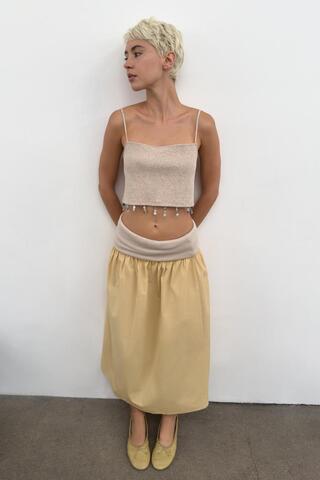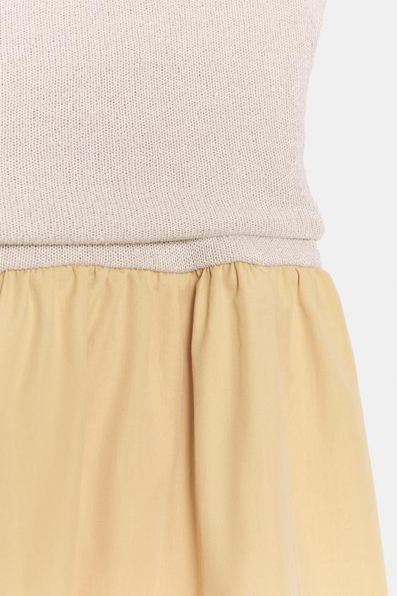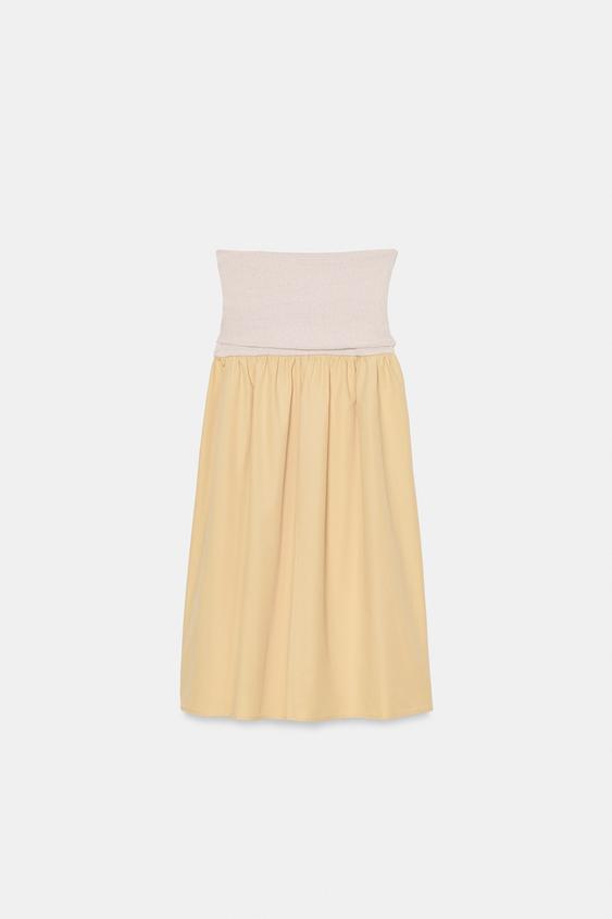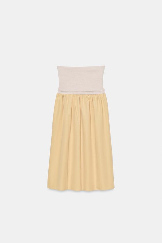ZARA КОМБИНИРОВАННАЯ ЮБКА С ПОЯСОМ-КУШАКОМ, ЭКРЮ/ЖЕЛТЫЙ