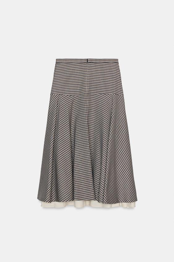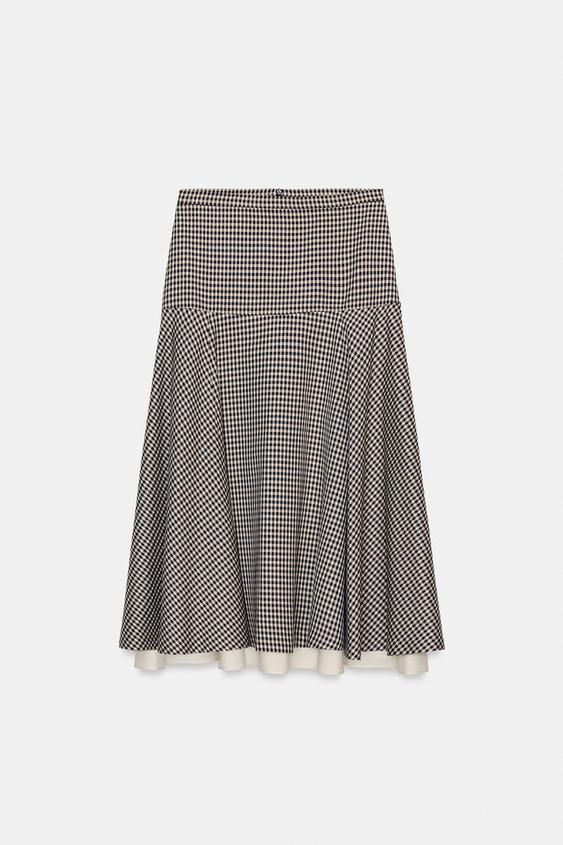 ZARA КОМБИНИРОВАННАЯ ЮБКА В КЛЕТКУ — ZW COLLECTION, КОРИЧНЕВЫЙ