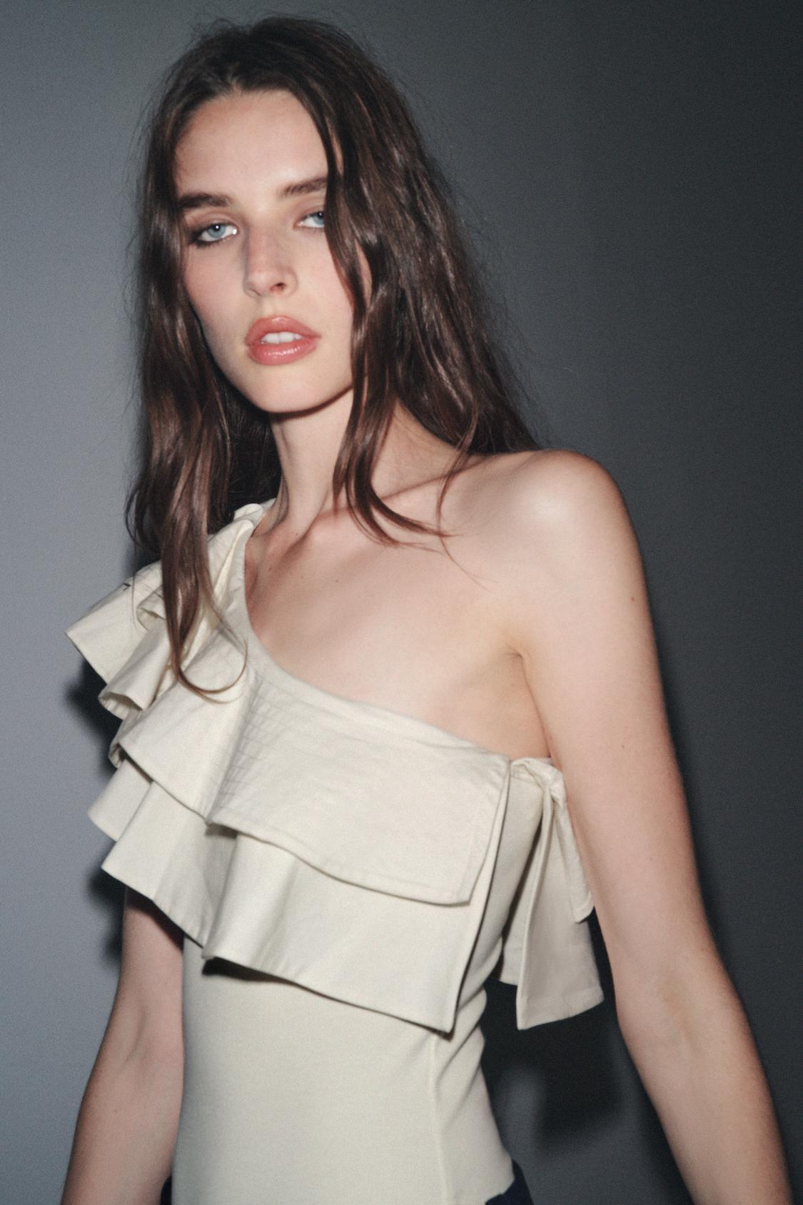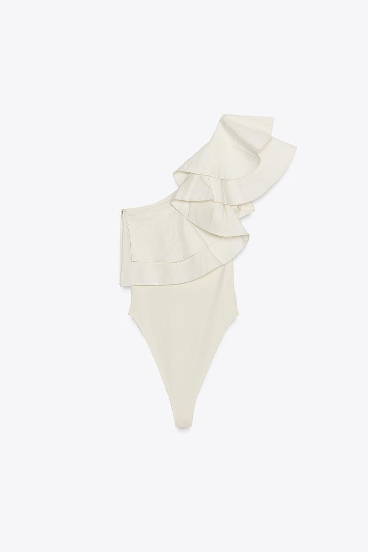 ZARA КОМБИНИРОВАННОЕ БОДИ АСИММЕТРИЧНОГО КРОЯ С ВОЛАНОМ, ЭКРЮ