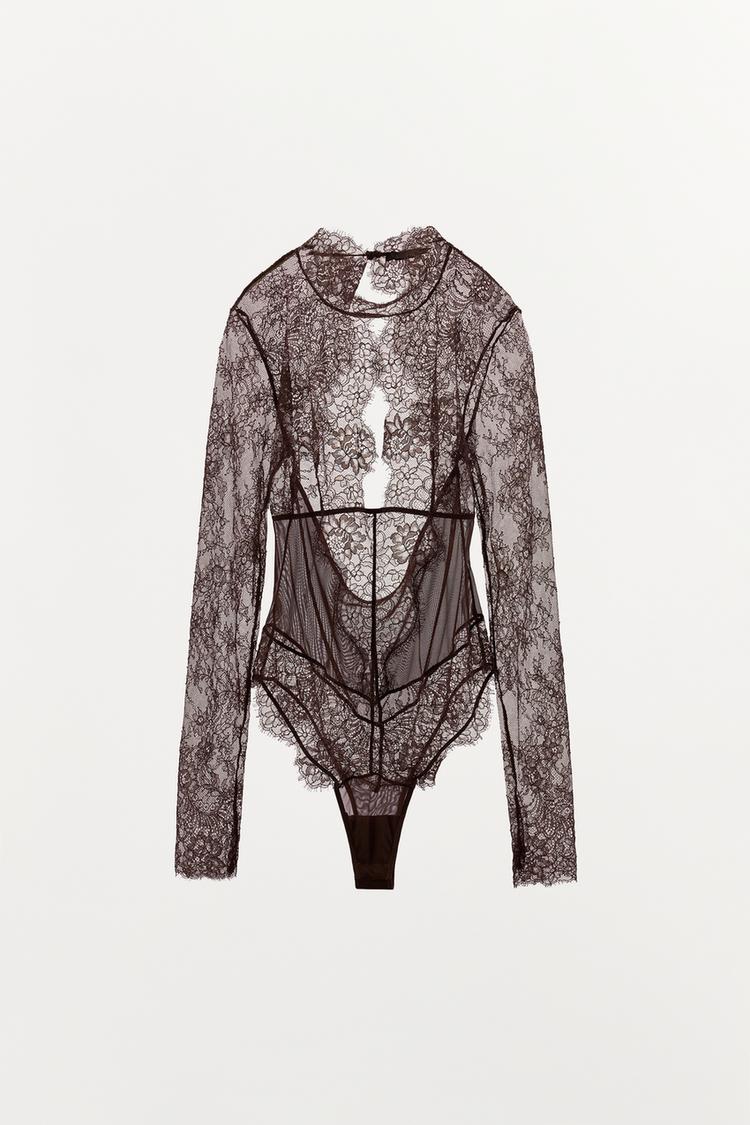 ZARA КОМБИНИРОВАННОЕ БОДИ С КРУЖЕВОМ И ВЫРЕЗОМ СЗАДИ, ГРАНАТОВЫЙ