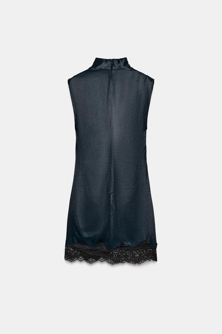 ZARA КОМБИНИРОВАННОЕ МИНИ-ПЛАТЬЕ С КРУЖЕВОМ, МОРСКОЙ СИНИЙ
