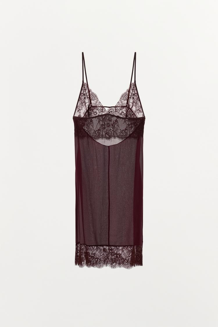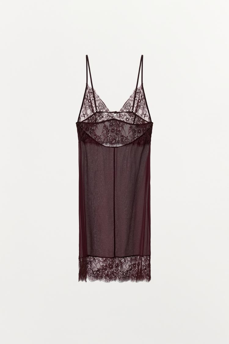 ZARA КОМБИНИРОВАННОЕ МИНИ-ПЛАТЬЕ С КРУЖЕВОМ, ТЕМНО-БОРДОВЫЙ