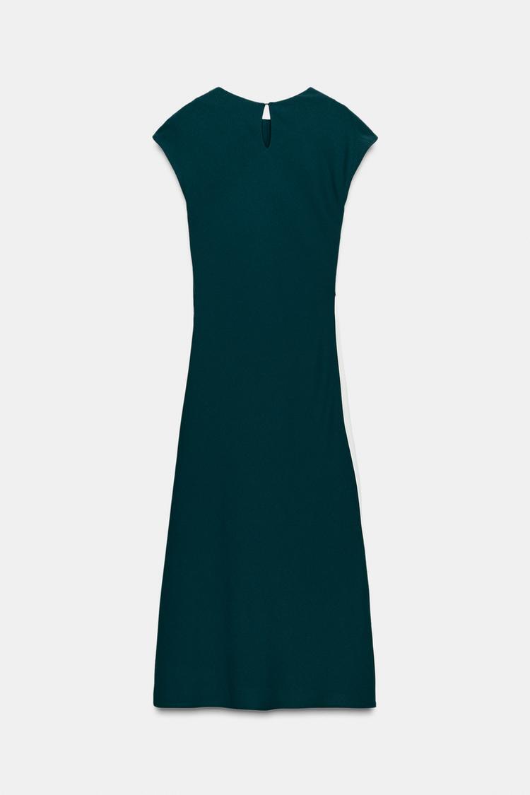 ZARA КОМБИНИРОВАННОЕ ПЛАТЬЕ МИДИ, ЭКРЮ/СИНИЙ