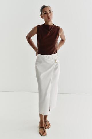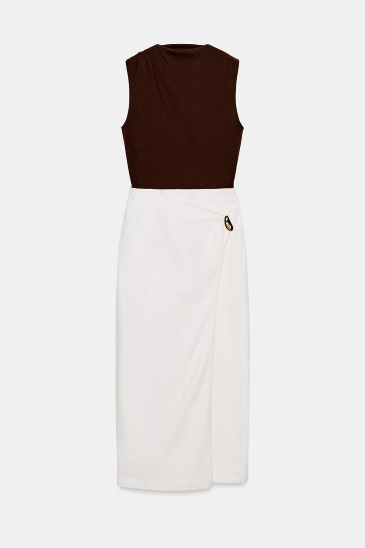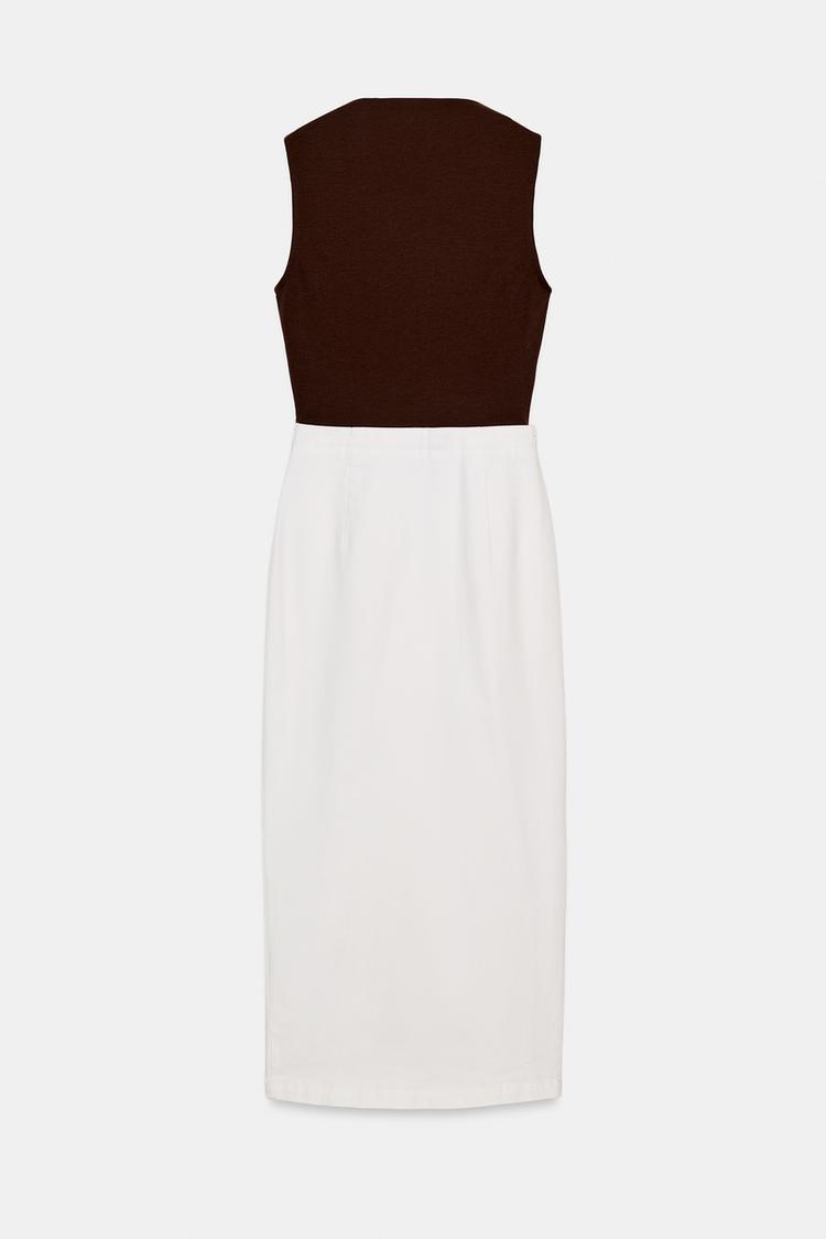 ZARA КОМБИНИРОВАННОЕ ПЛАТЬЕ МИДИ С ФУРНИТУРОЙ, КОРИЧНЕВЫЙ/ЭКРЮ