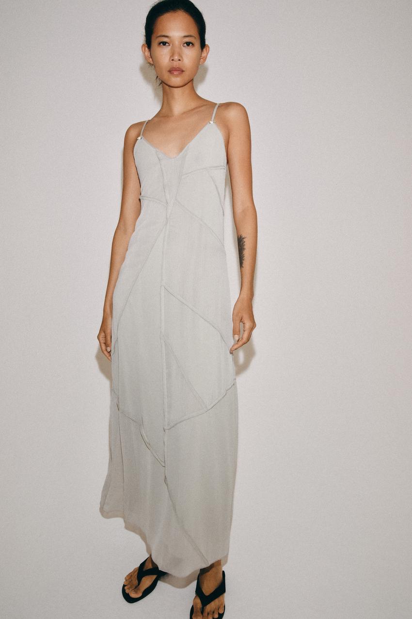 ZARA КОМБИНИРОВАННОЕ ПЛАТЬЕ МИДИ, СВЕТЛО-БИРЮЗОВЫЙ