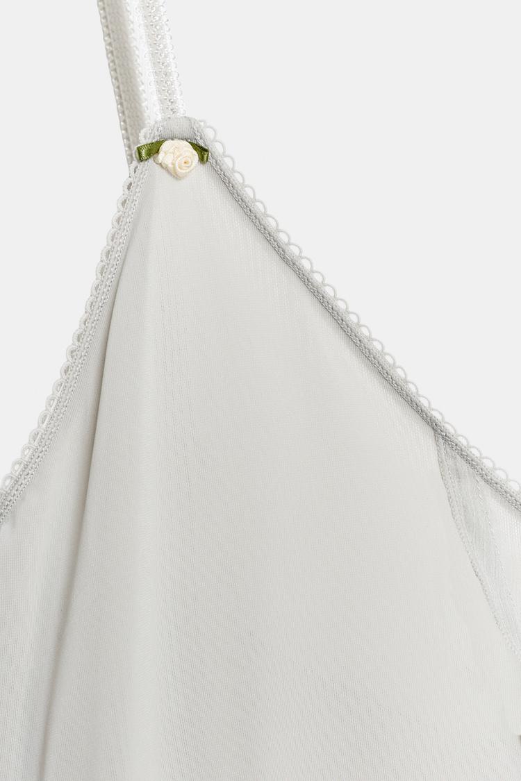 Платье миди из шифоновой ткани. V-образный вырез и тонкие бретели. Подкладка в тон. Прямой подол.
