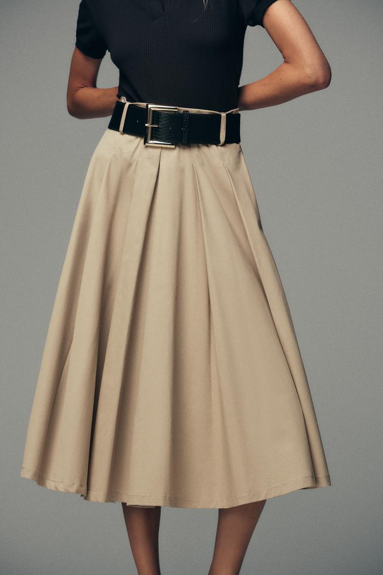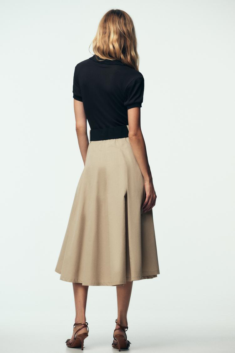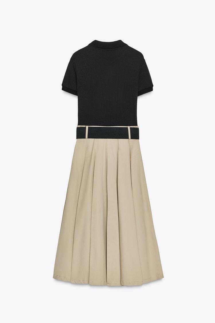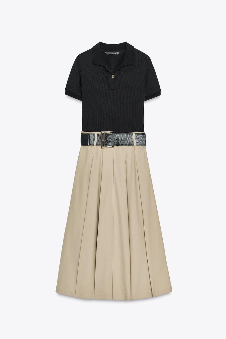 ZARA КОМБИНИРОВАННОЕ ПЛАТЬЕ С ПОЯСОМ, ПЕСОЧНЫЙ/ЧЕРНЫЙ