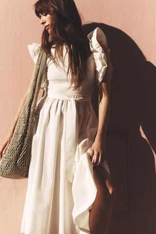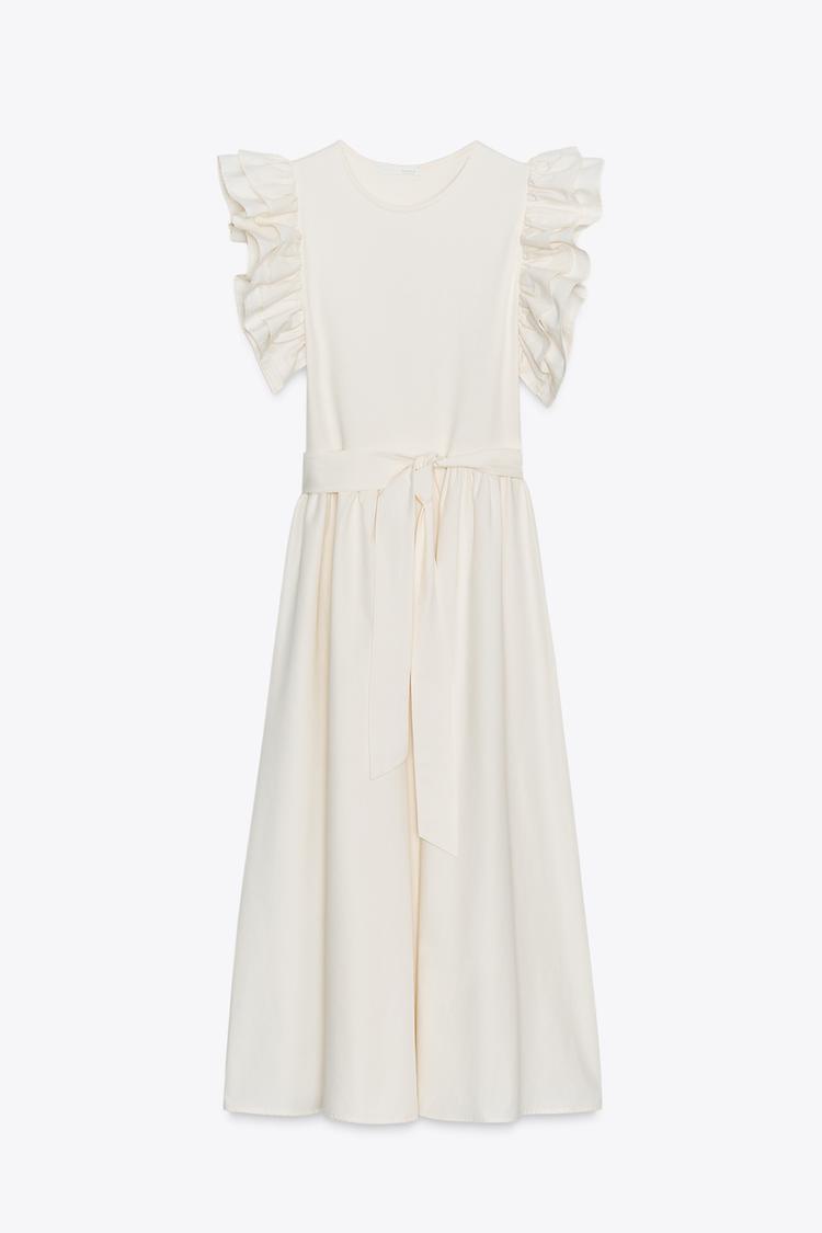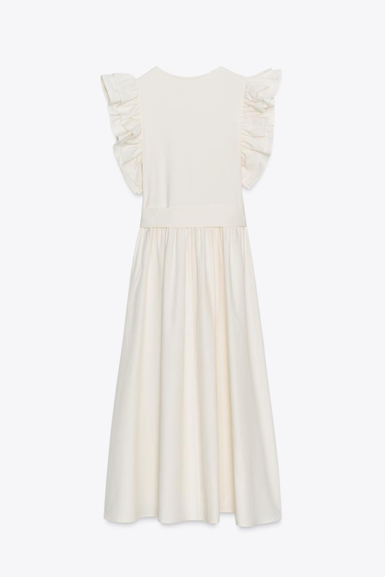 ZARA КОМБИНИРОВАННОЕ ПЛАТЬЕ С ВОЛАНАМИ, ЭКРЮ
