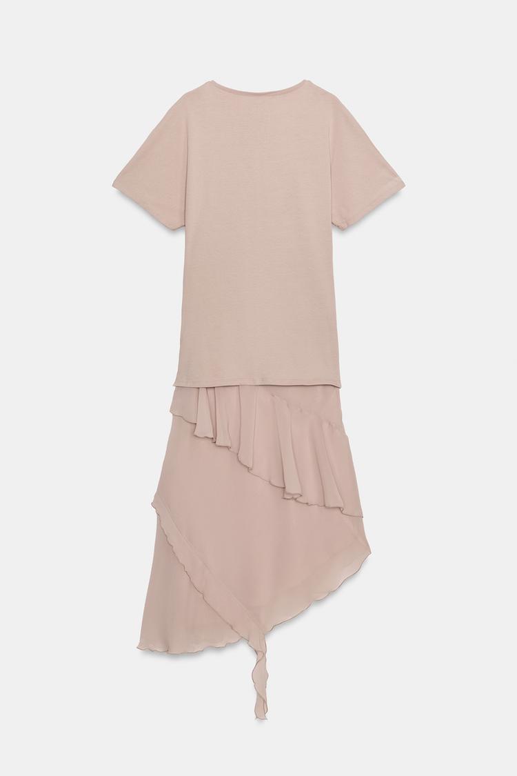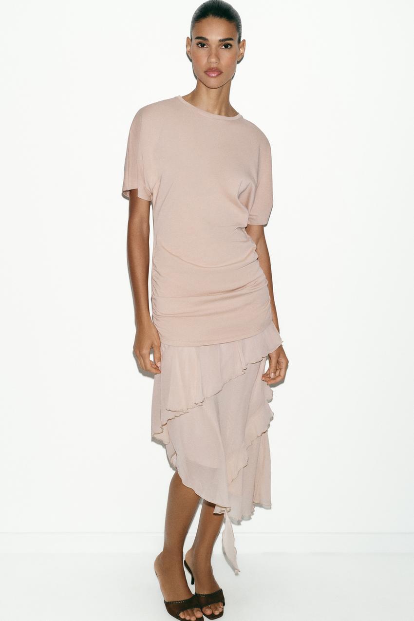ZARA КОМБИНИРОВАННОЕ ПЛАТЬЕ С ВОЛАНАМИ, ТЕЛЕСНО-РОЗОВЫЙ
