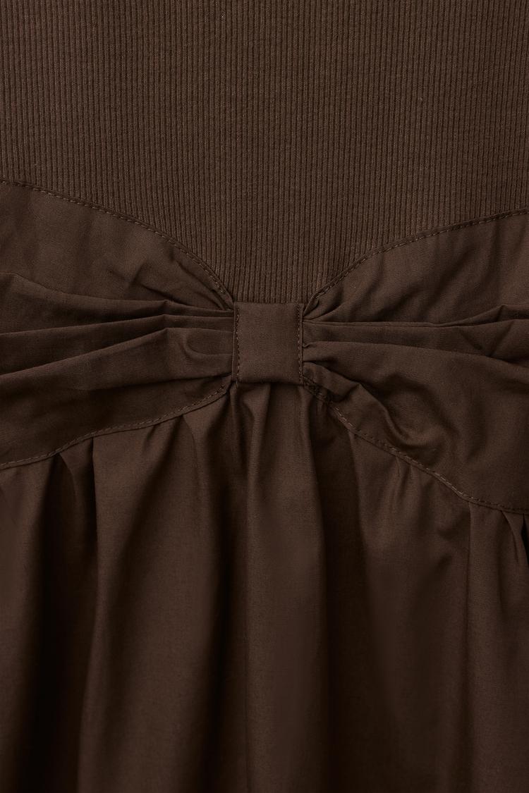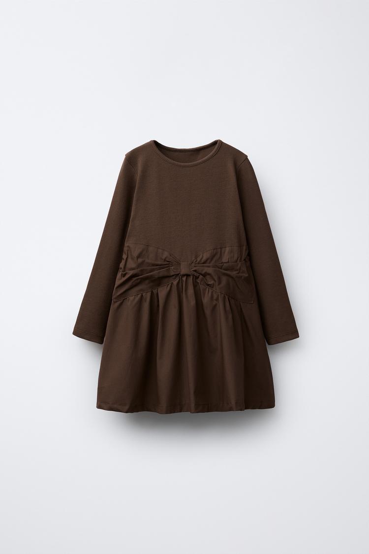 ZARA КОМБИНИРОВАННОЕ ПЛАТЬЕ В РУБЧИК С БАНТОМ, ШОКОЛАДНЫЙ
