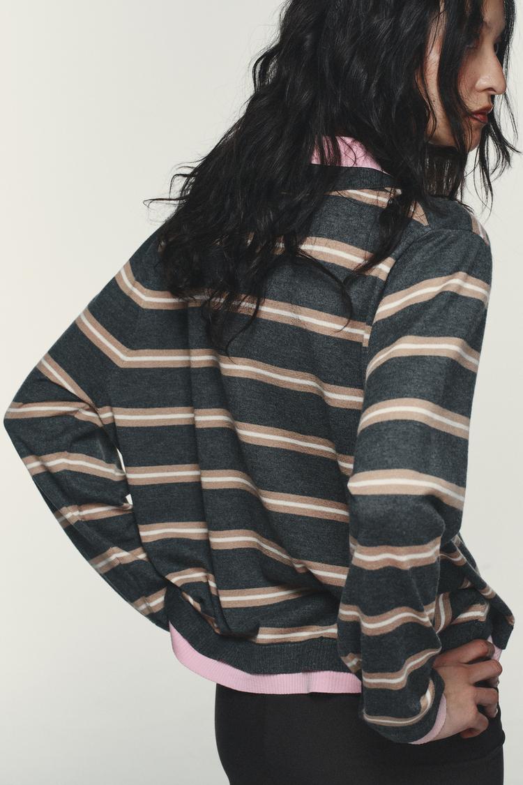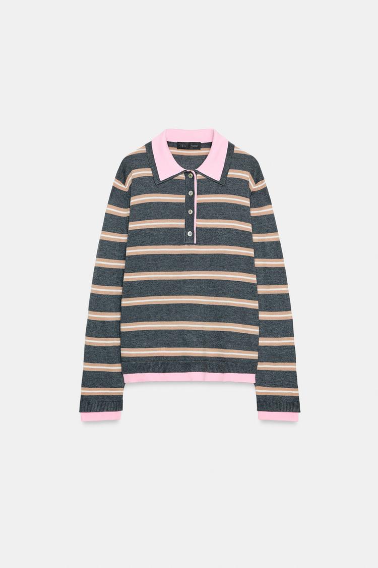 ZARA КОМБИНИРОВАННОЕ ТРИКОТАЖНОЕ ПОЛО В ПОЛОСКУ, РАЗНОЦВЕТНЫЙ
