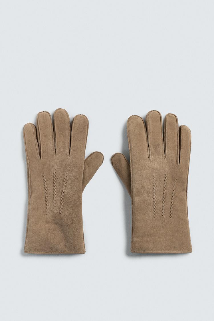ZARA КОМБИНИРОВАННЫЕ КОЖАНЫЕ ПЕРЧАТКИ, БЕЖЕВЫЙ