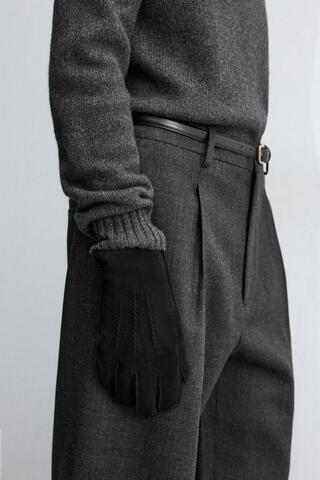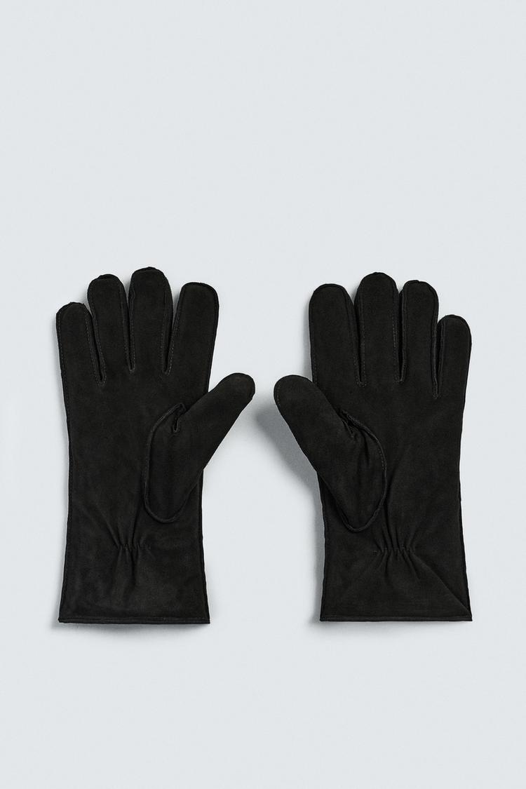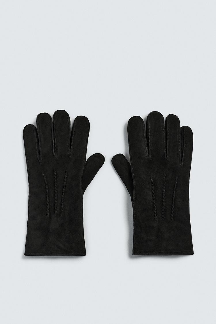 ZARA КОМБИНИРОВАННЫЕ КОЖАНЫЕ ПЕРЧАТКИ, ЧЕРНЫЙ