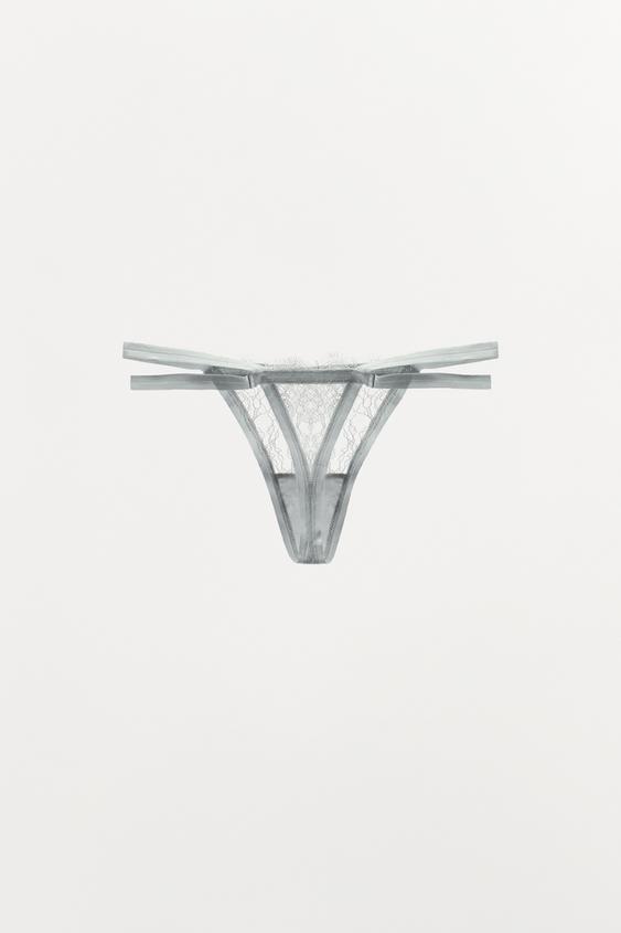 ZARA КОМБИНИРОВАННЫЕ КРУЖЕВНЫЕ ТРУСЫ, СЕРО-СИНИЙ