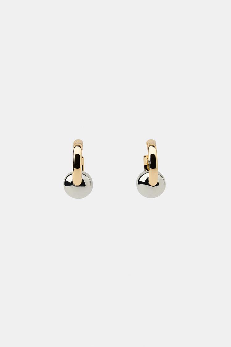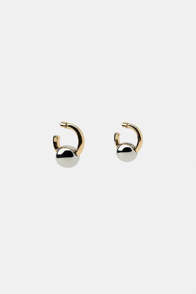 ZARA КОМБИНИРОВАННЫЕ СЕРЬГИ-КОЛЬЦА С ШАРИКОМ, ЗОЛОТОЙ/СЕРЕБРЯНЫЙ