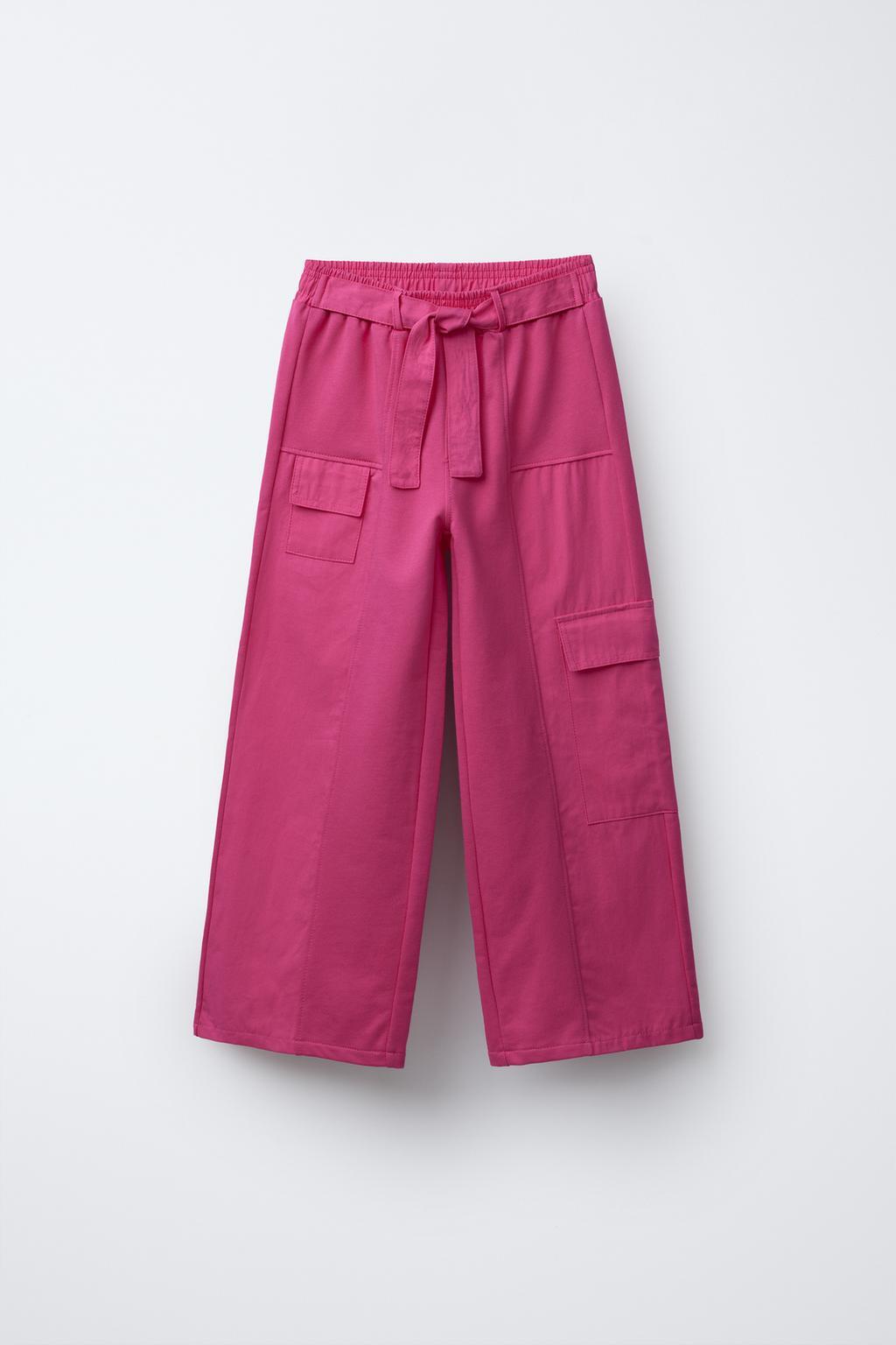 ZARA КОМБИНИРОВАННЫЕ ШИРОКИЕ БРЮКИ С КАРМАНАМИ, ЦВЕТ ФУКСИИ