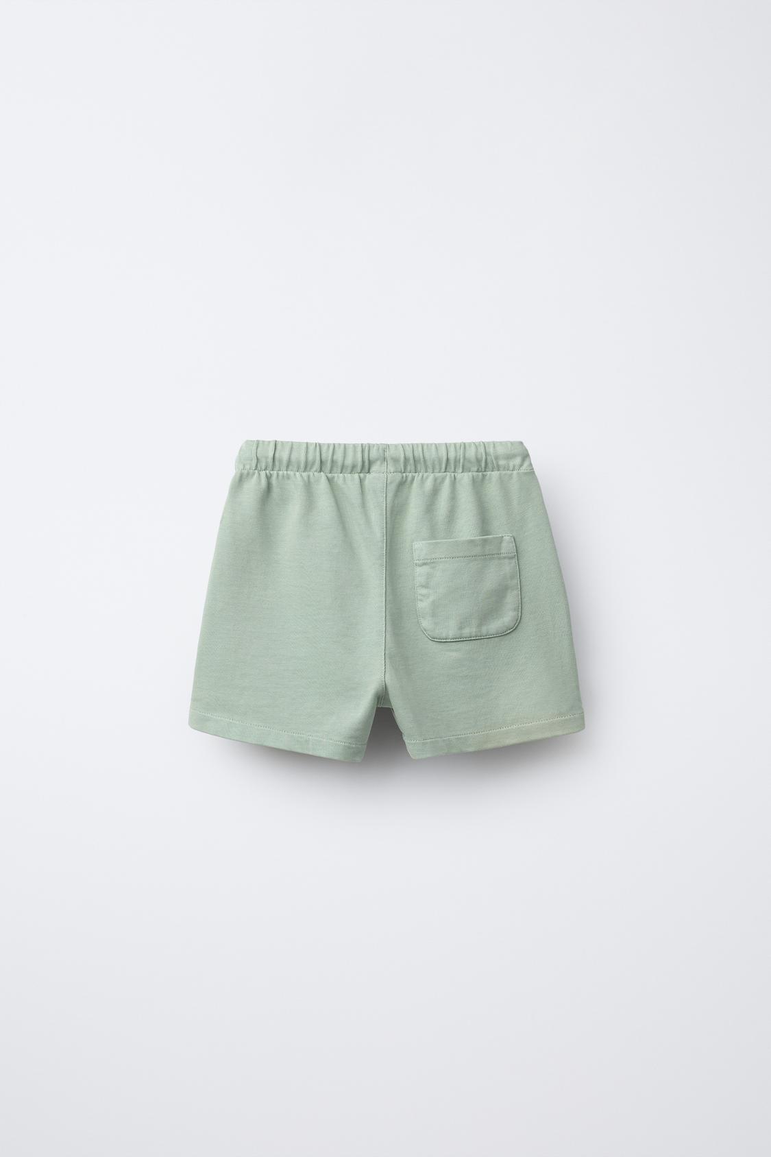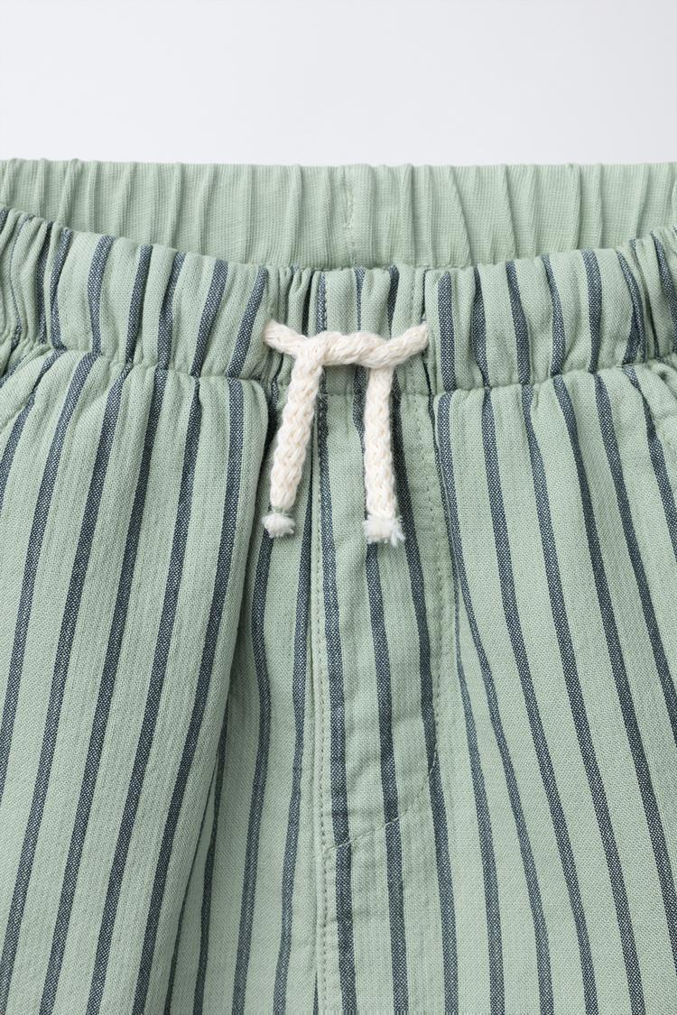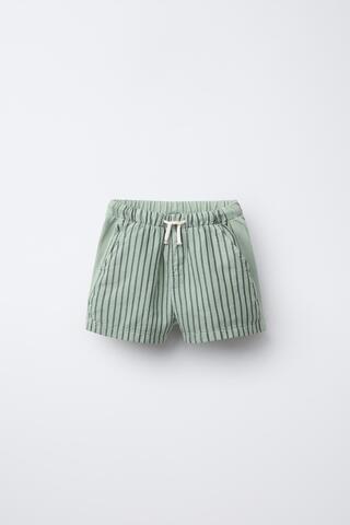 ZARA КОМБИНИРОВАННЫЕ ШОРТЫ-БЕРМУДЫ В ПОЛОСКУ, ЗЕЛЕНЫЙ