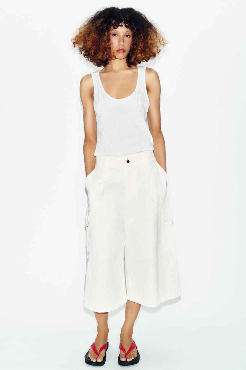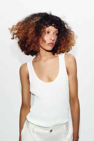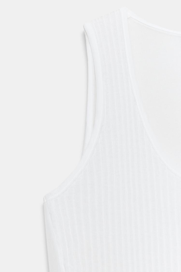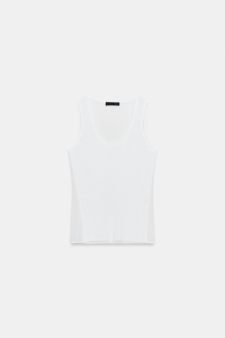 ZARA КОМБИНИРОВАННЫЙ ПОЛУПРОЗРАЧНЫЙ ТРИКОТАЖНЫЙ ТОП, БЕЛЫЙ