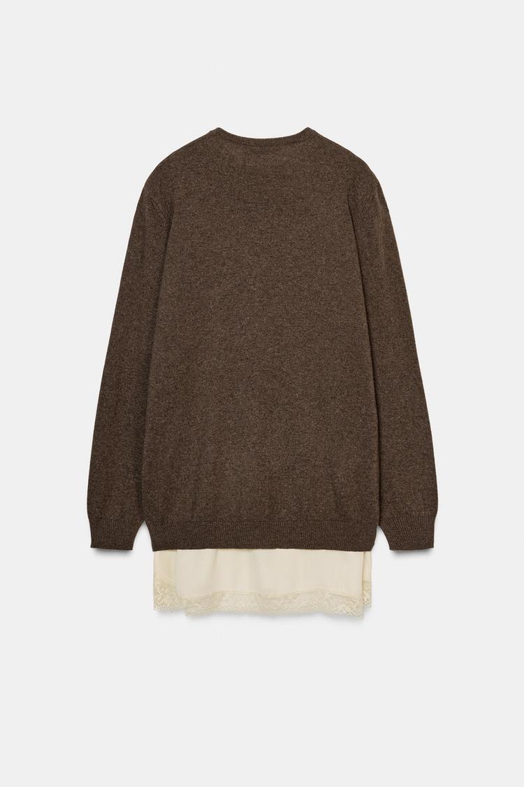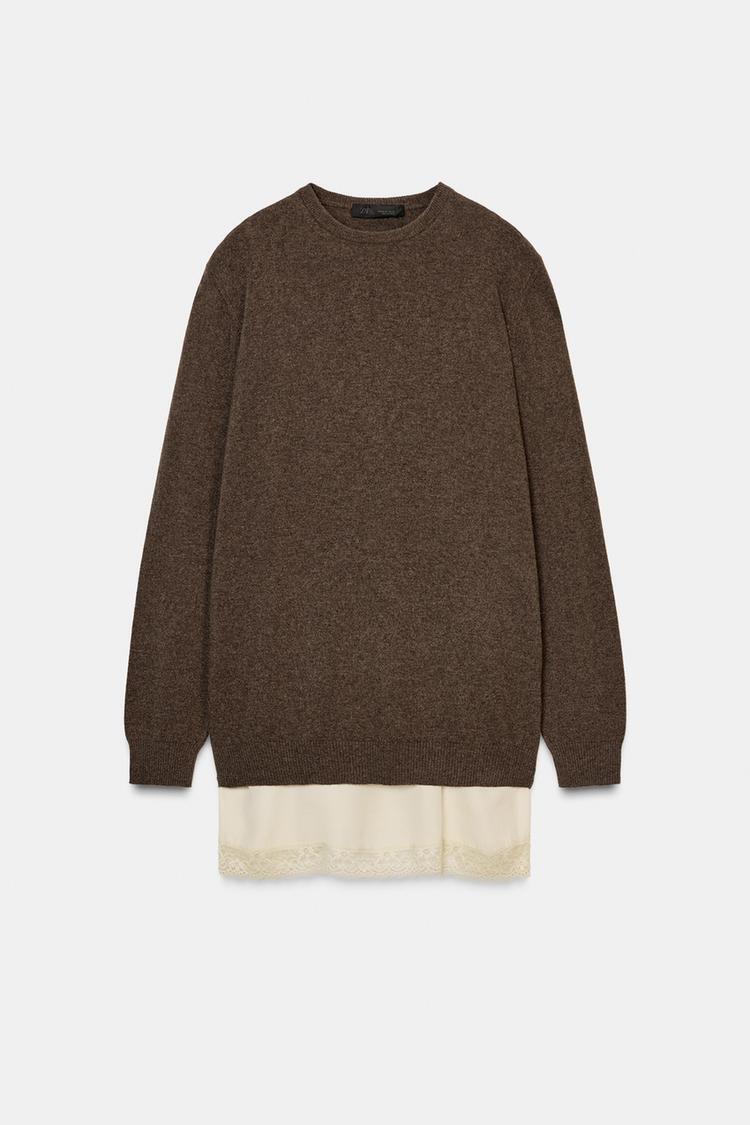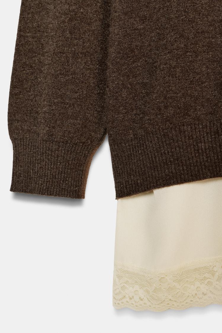 ZARA КОМБИНИРОВАННЫЙ СВИТЕР ИЗ ШЕРСТИ, ТЕМНЫЙ СЕРО-КОРИЧНЕВЫЙ