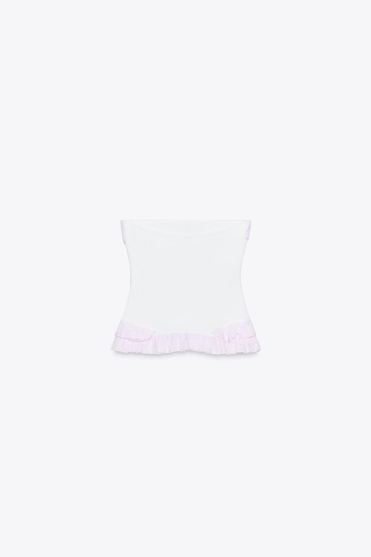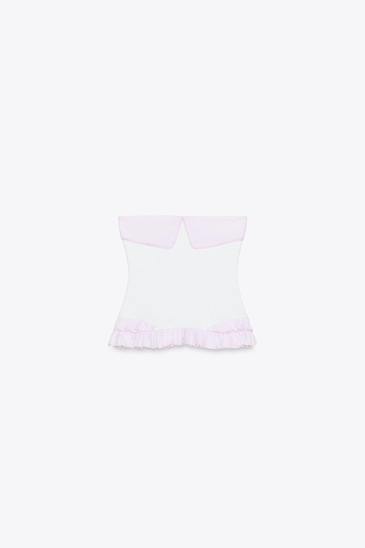 ZARA КОМБИНИРОВАННЫЙ ТОП БЕЗ БРЕТЕЛЕЙ, БЕЛЫЙ