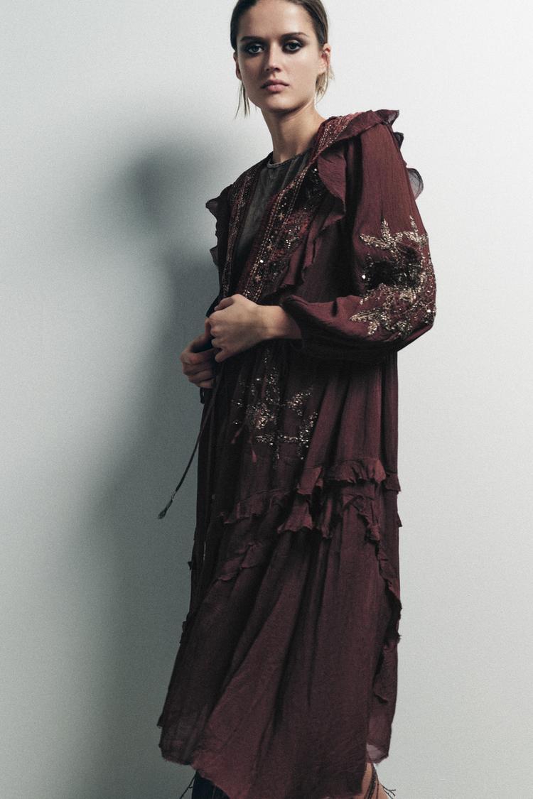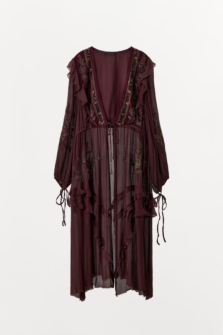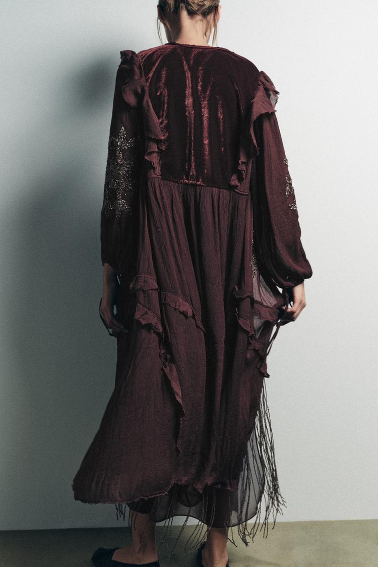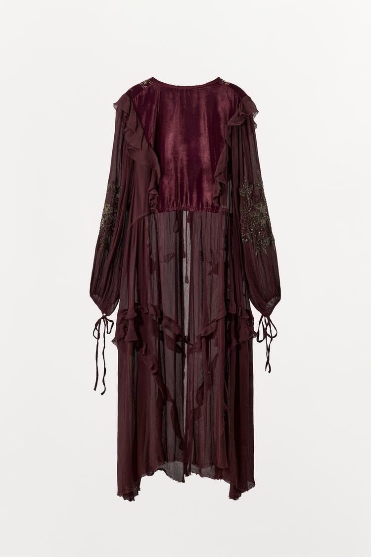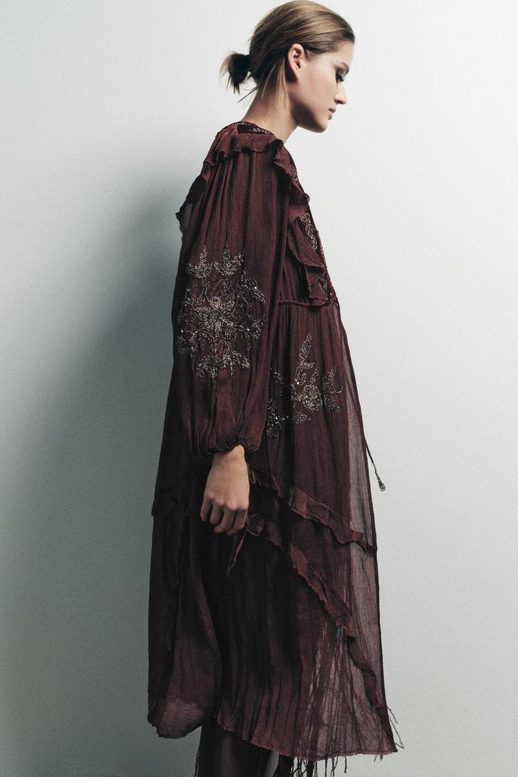 ZARA КОМБИНИРОВАННЫЙ ТОП ИЗ ЖОРЖЕТА С ПАЙЕТКАМИ, ВИННЫЙ